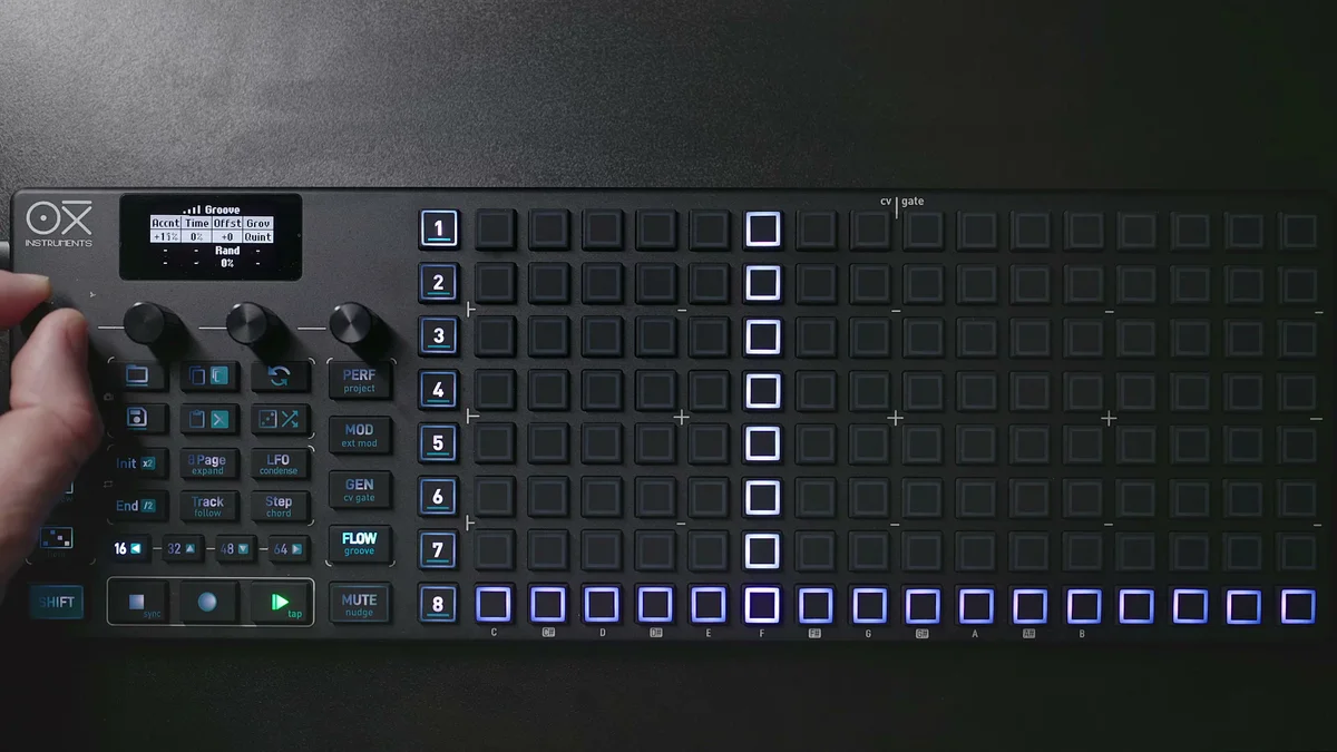 OXI ONE MKIIにはGroove機能が搭載されています。Shift + Grooveで設定画面にアクセスできます。