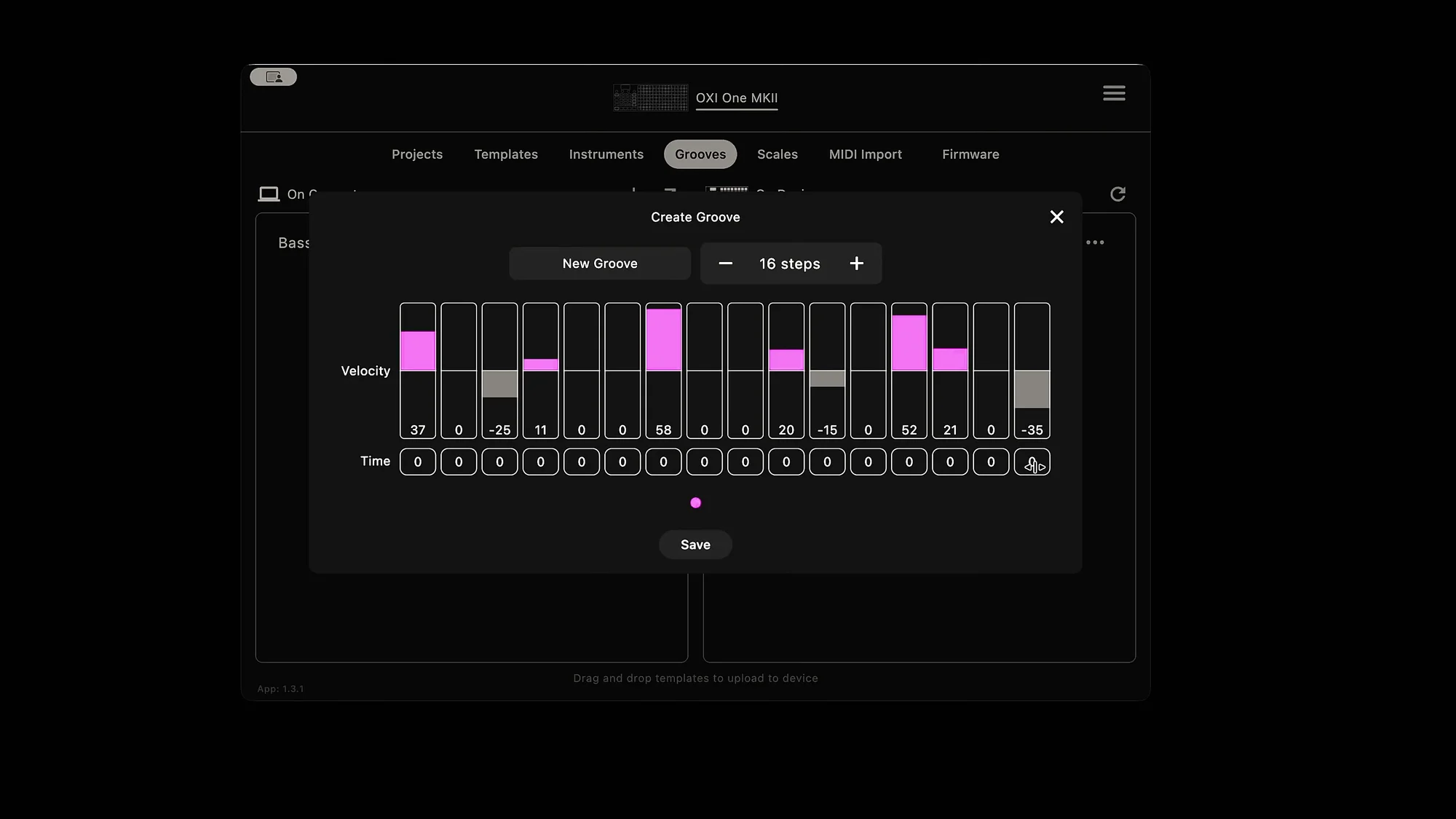 - OXI Appを開き、Grooveセクションに移動する