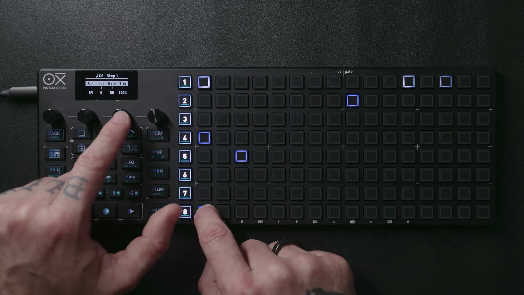 各ノートを個別に設定するだけでなく、カラム(ステップ)全体のパラメーターを一括で編集することもできます。ステップを押さずにエンコーダーを操作すると、以下のカラムビューにアクセスできます。