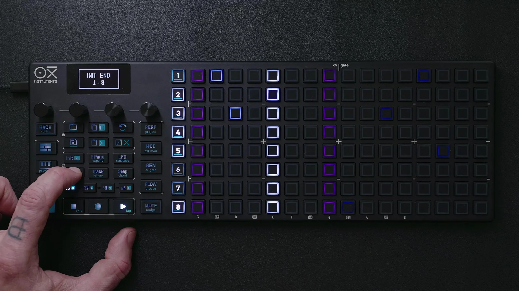 同様に、Initボタンを使って開始点を変更することもできます。Initを押してから拡張ページのステップを選択すれば、例えばステップ65から開始するシーケンスを作ることも可能です。