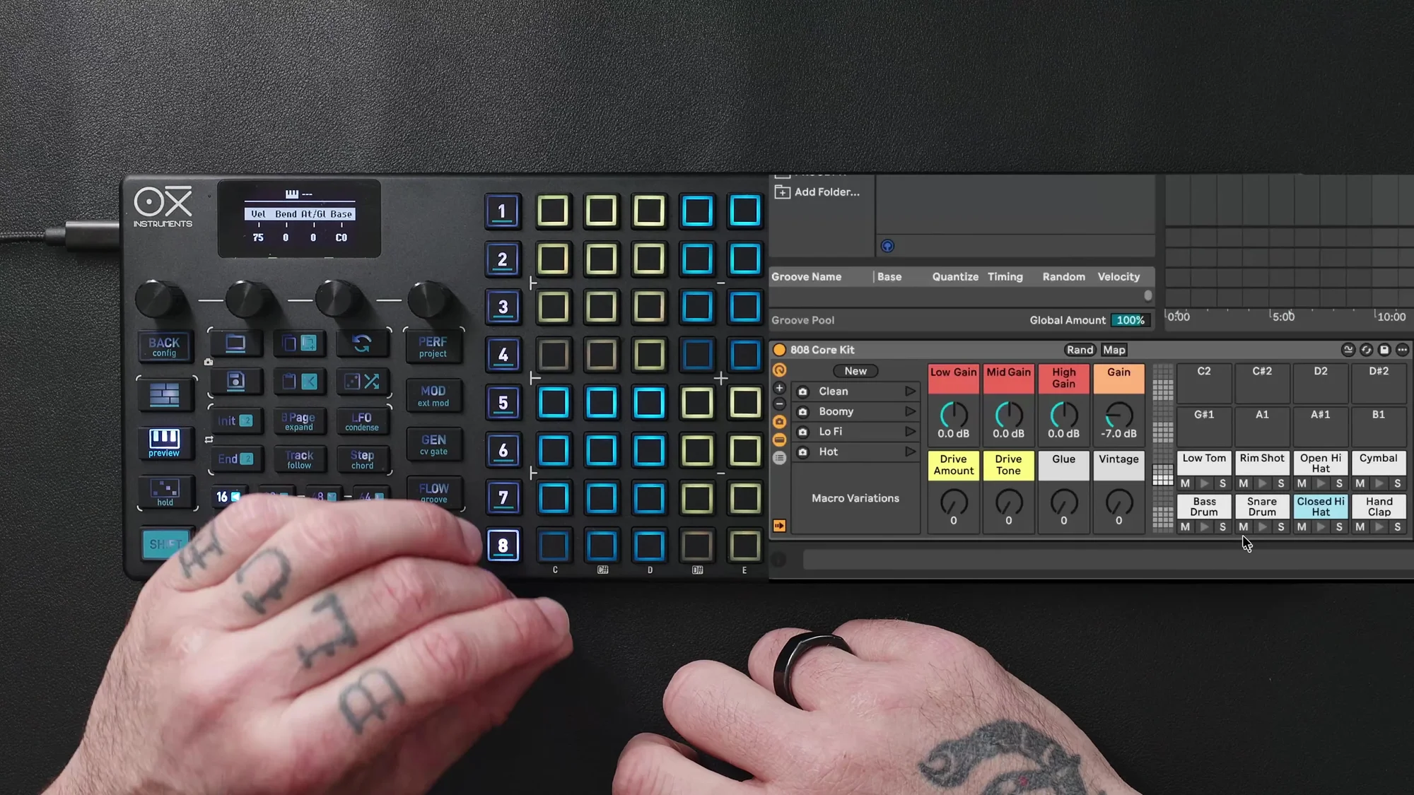 各トラックに独立したグルーブを割り当てることができます。Shift + Grooveでグルーブページに入り、トラックを選択してグルーブを適用します。