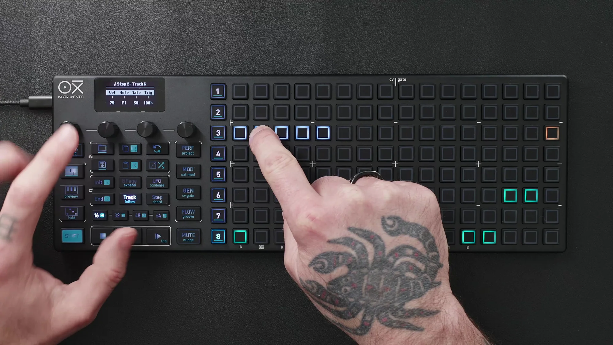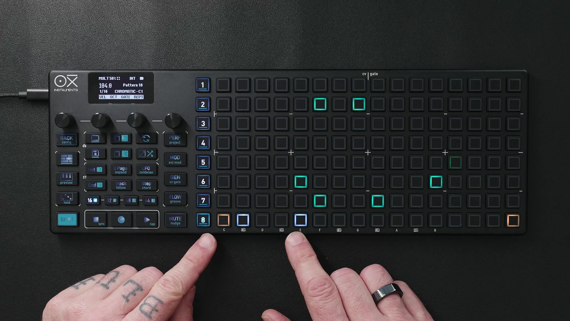 各トラックはデフォルトでルートノートから1インターバルずつオフセットされた状態で始まります。選択したスケールに応じてクォンタイズされます。