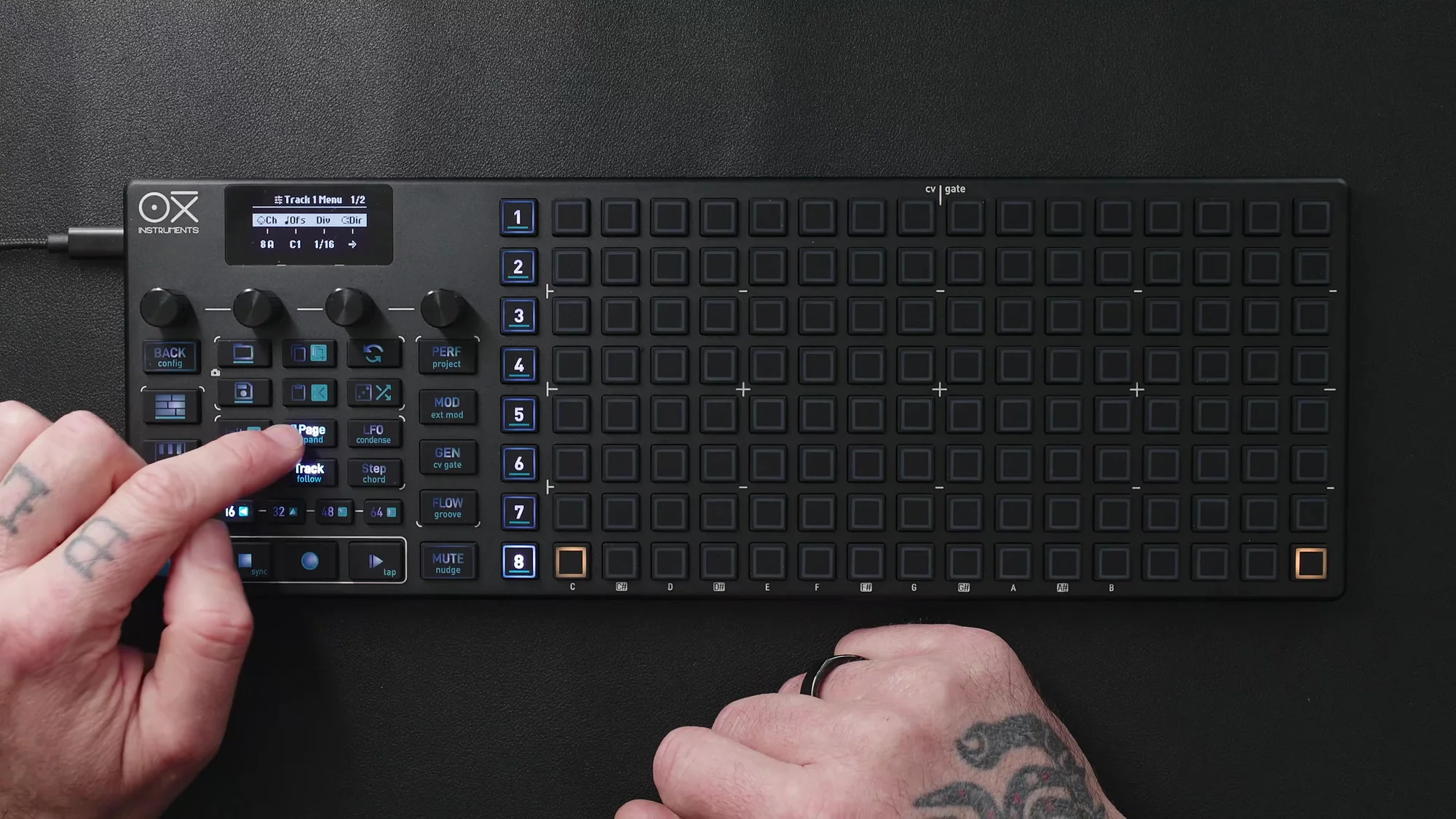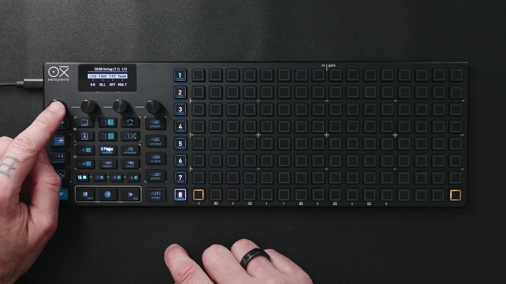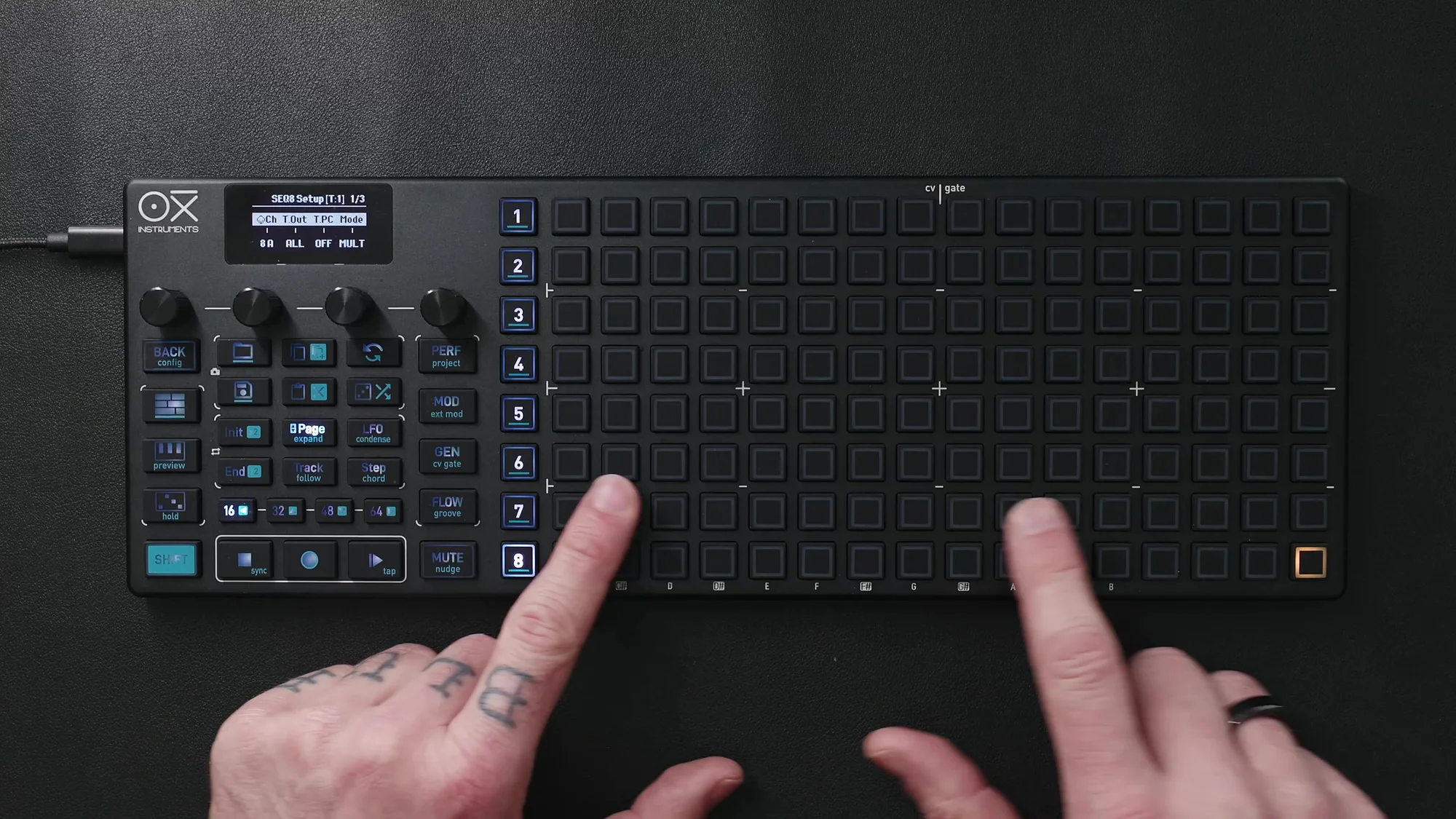 Multitrackモードは、1つのグリッド上で最大8トラックを同時に表示・制御できるモードです。各トラックはMIDIチャンネル、タイムディビジョン、グルーブなど独立した設定を持ちます。グリッドの各行がそれぞれのトラックに対応し、最下段がトラック1、最上段がトラック8となります。今回のEP.9ではリズムシーケンシングに焦点を当て、メロディックな使い方は次回のビデオで扱われます。