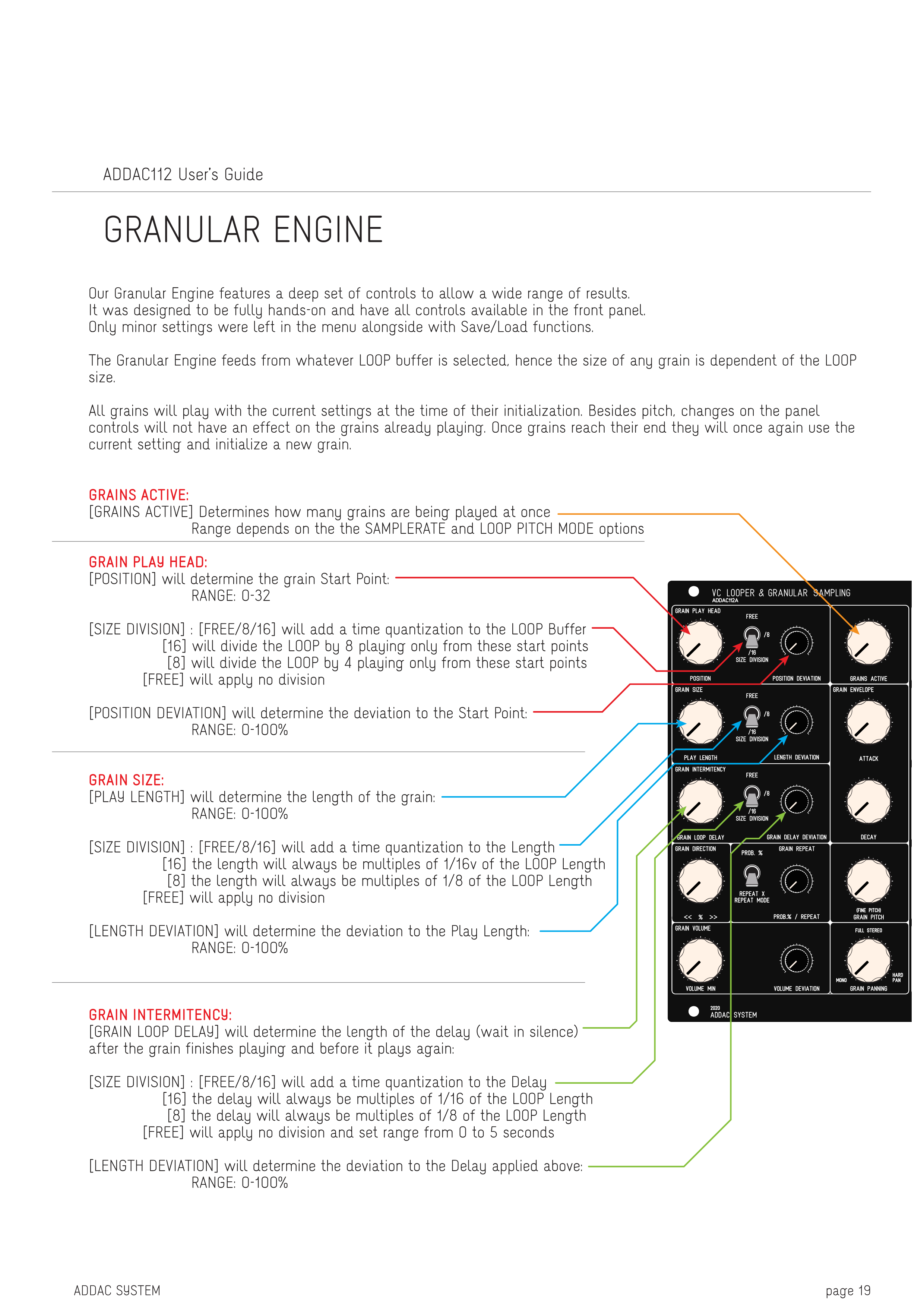 Granular Engineは選択されているLOOPバッファーから供給されるため、各grainのサイズはLOOPサイズに依存します。