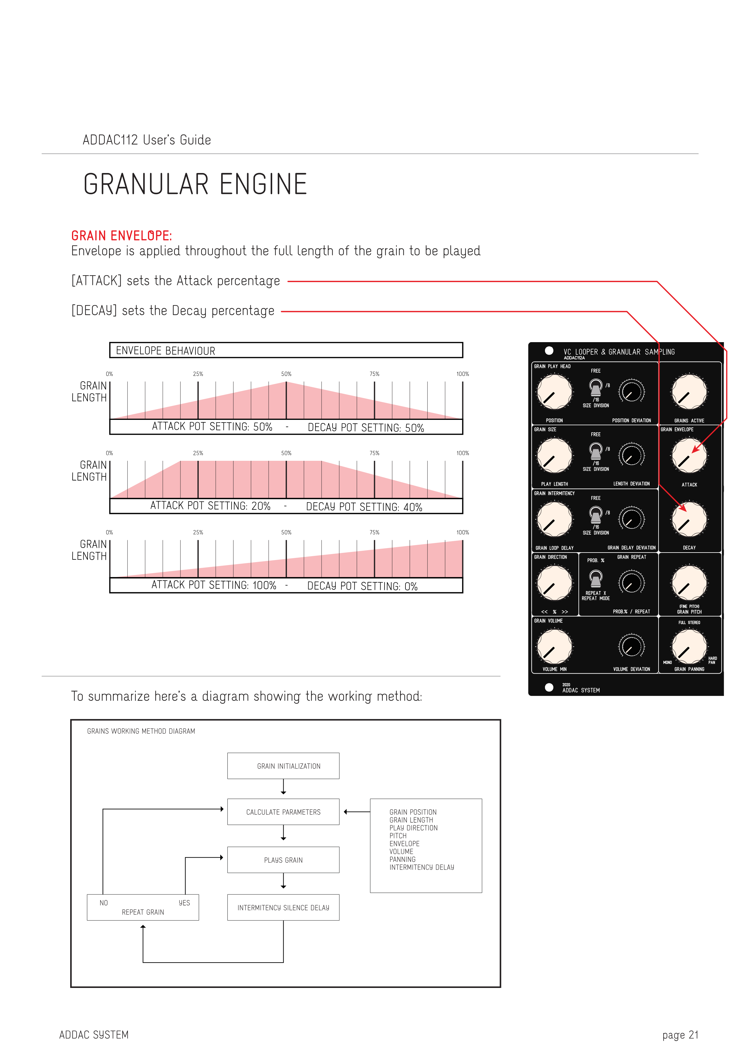 0% 25% 50% 75% 100% ATTACK POT SETTING: 20% - DECAY POT SETTING: 40% GRAIN LENGTH