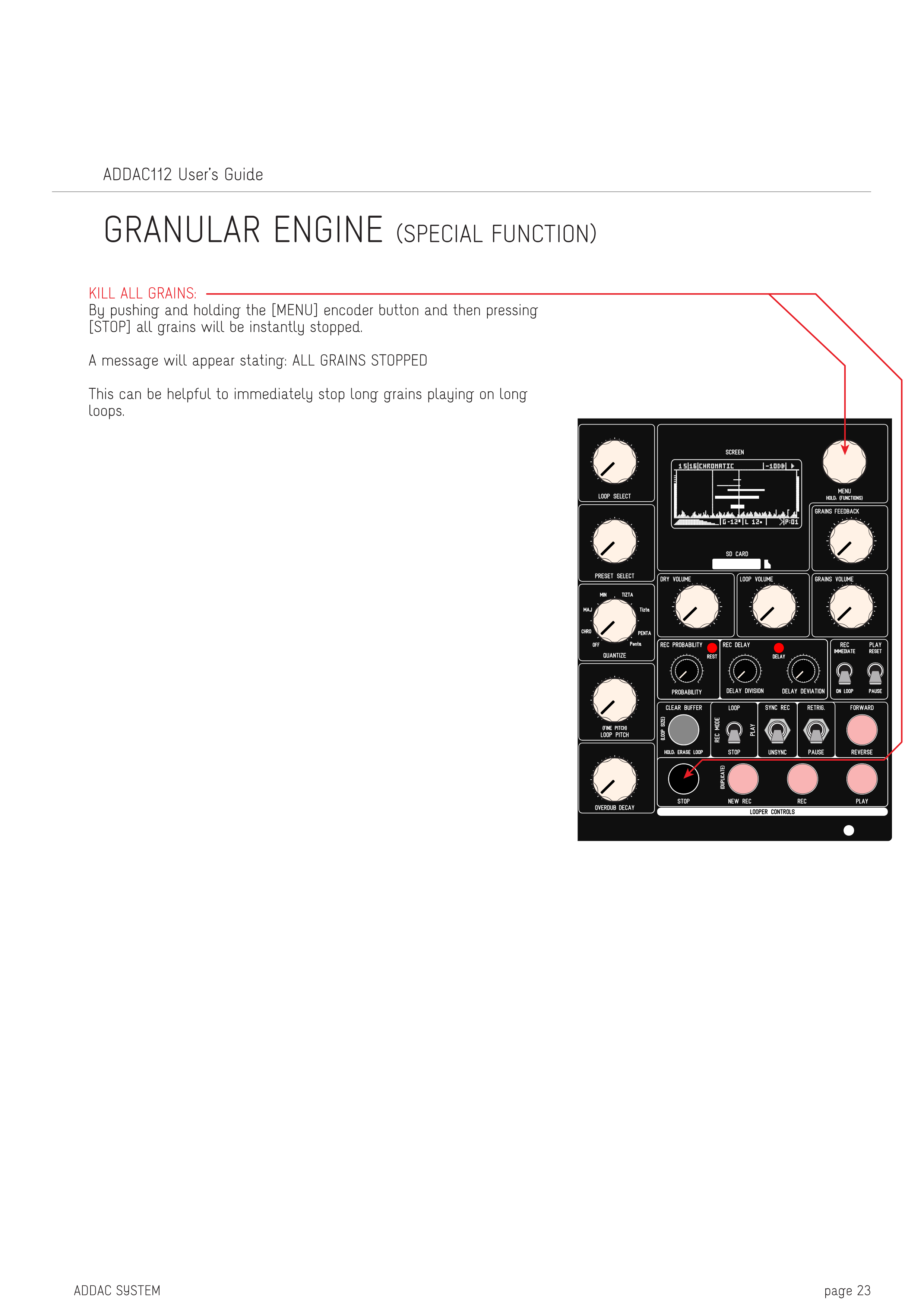 [MENU]エンコーダーボタンを押したまま[STOP]を押すと、すべてのgrainが即座に停止します。