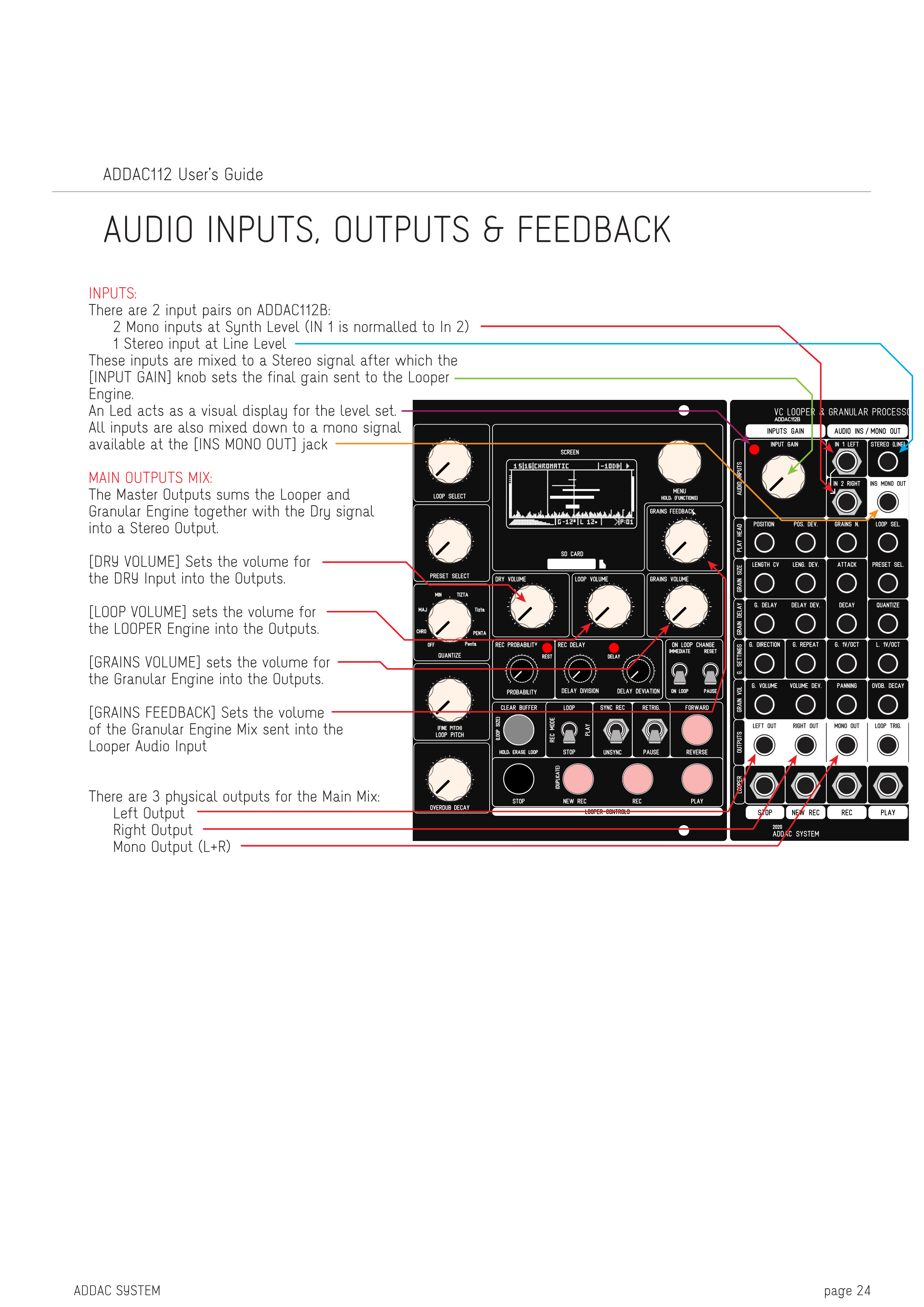 AUDIO INPUTS、OUTPUTS & FEEDBACK