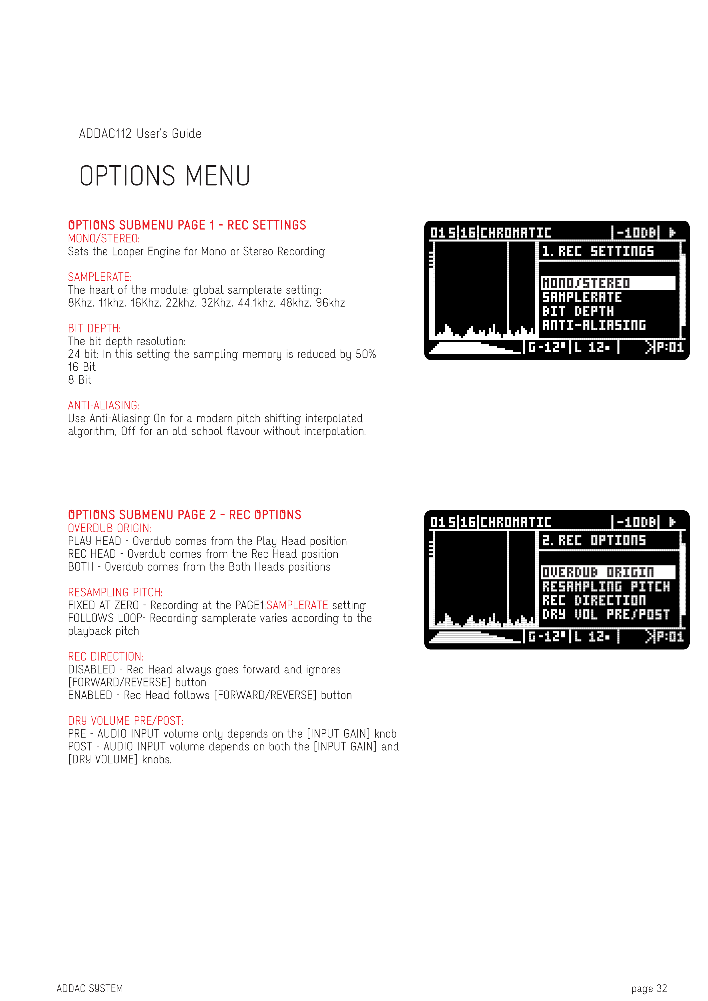 OPTIONS SUBMENU PAGE 2 - REC OPTIONS