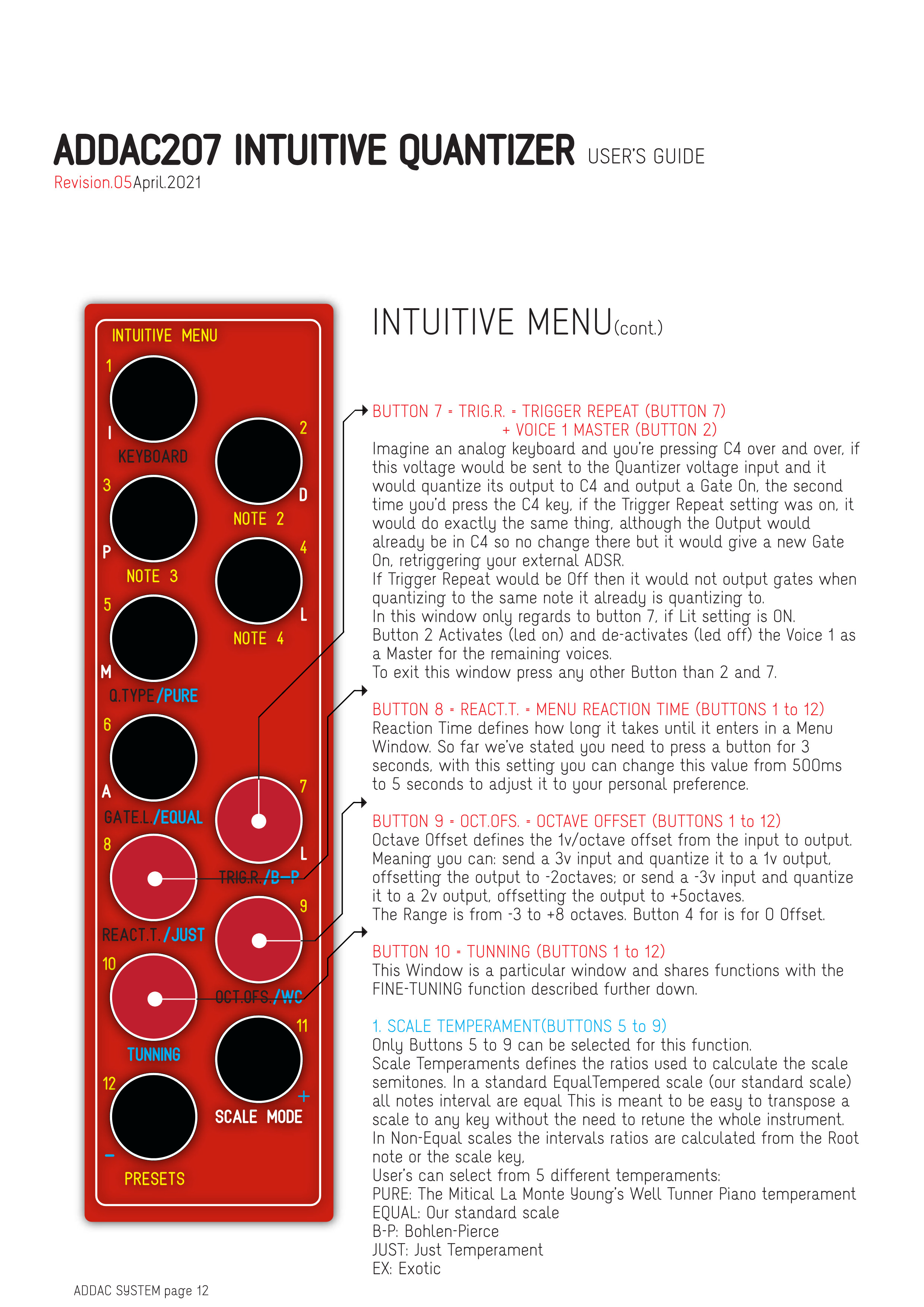 BUTTON 9 = OCT.OFS. = OCTAVE OFFSET (BUTTONS 1 to 12)