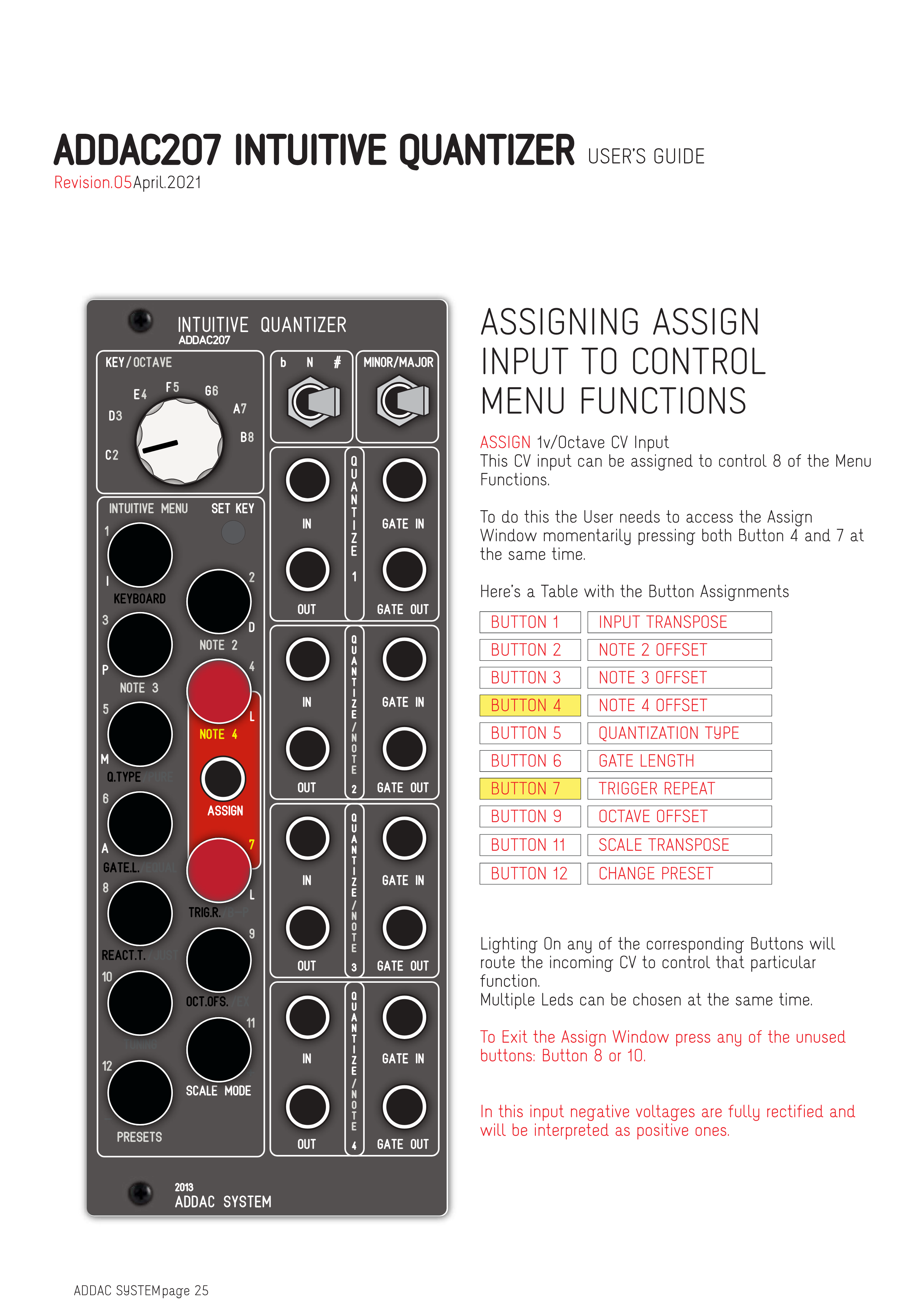 対応するButtonのいずれかをオンにすると、入力されるCVがその特定の機能をコントロールするようにルーティングされます。