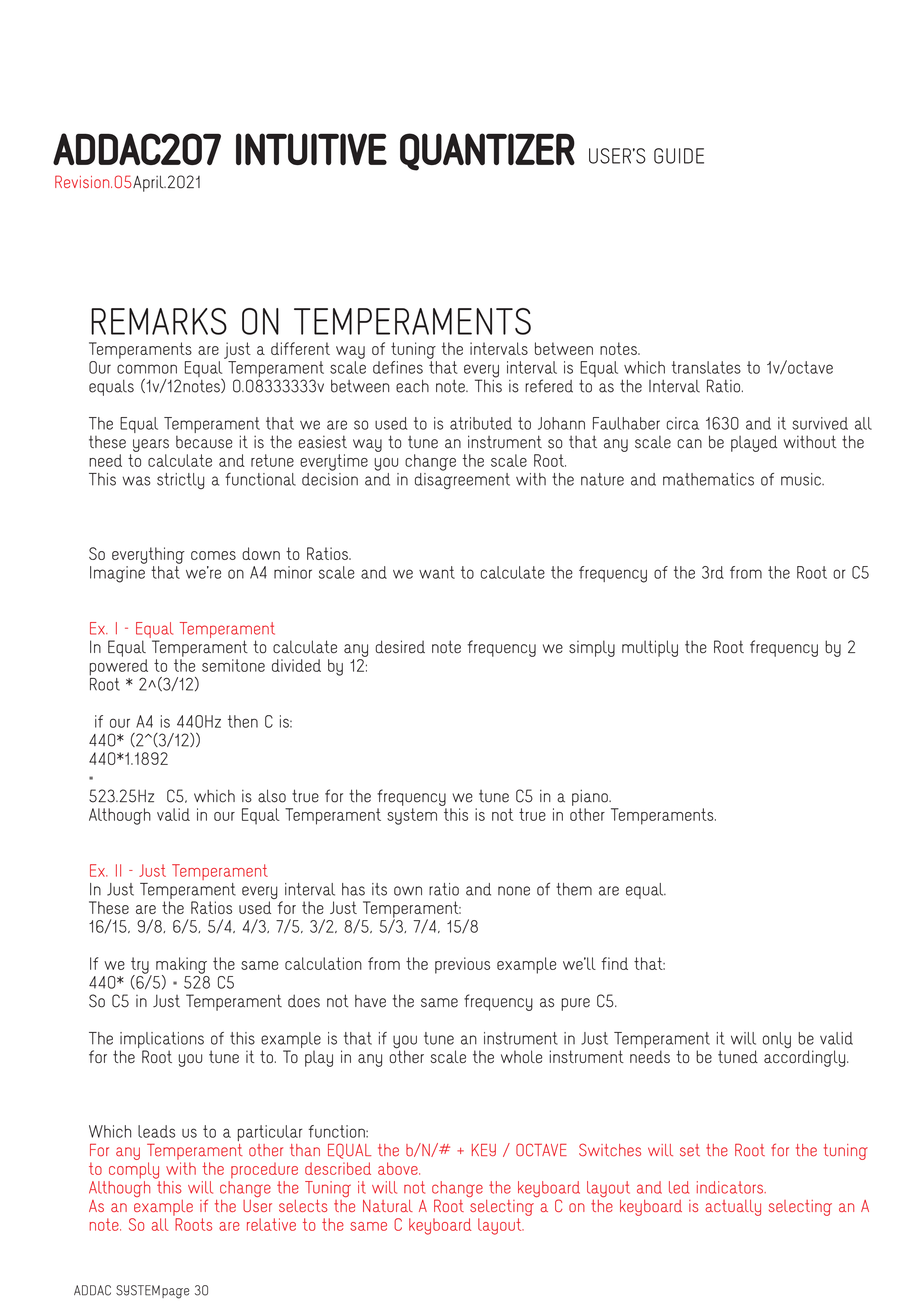 EQUAL以外の音律の場合、b/N/# + KEY / OCTAVE スイッチは、上記の手順に準拠するように調律のルートを設定します。