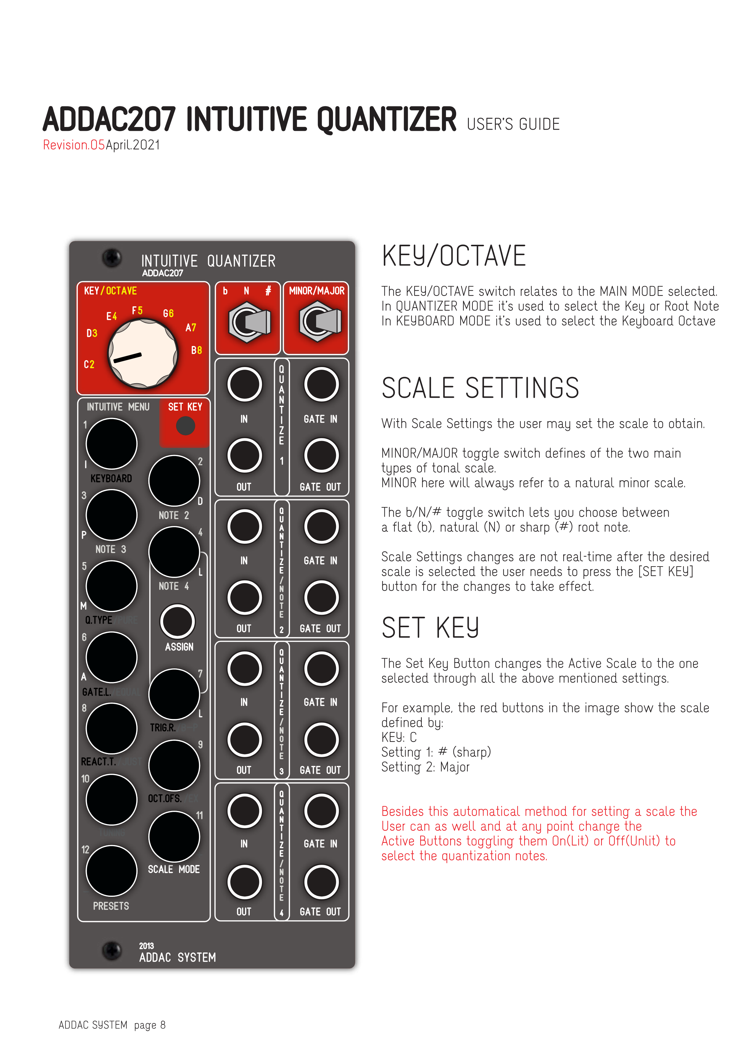 Scale Settingsの変更はリアルタイムでは反映されません。希望するスケールを選択した後、ユーザーは[SET KEY]ボタンを押して変更を有効にする必要があります。