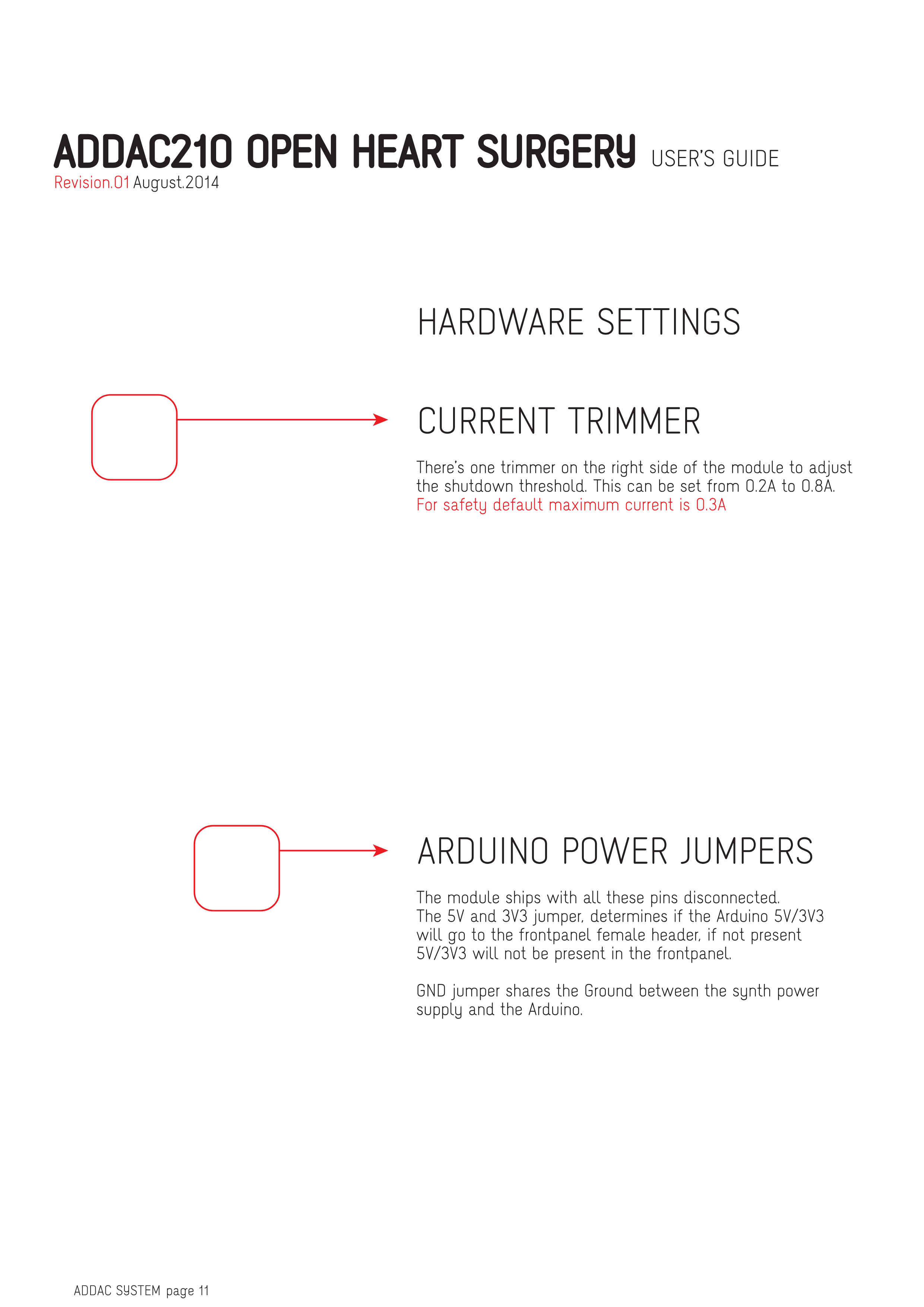 モジュール右側に、シャットダウン閾値を調整するためのトリマーが1つあります。これは0.2Aから0.8Aの間で設定できます。 安全のため、デフォルトの最大電流は0.3Aに設定されています。