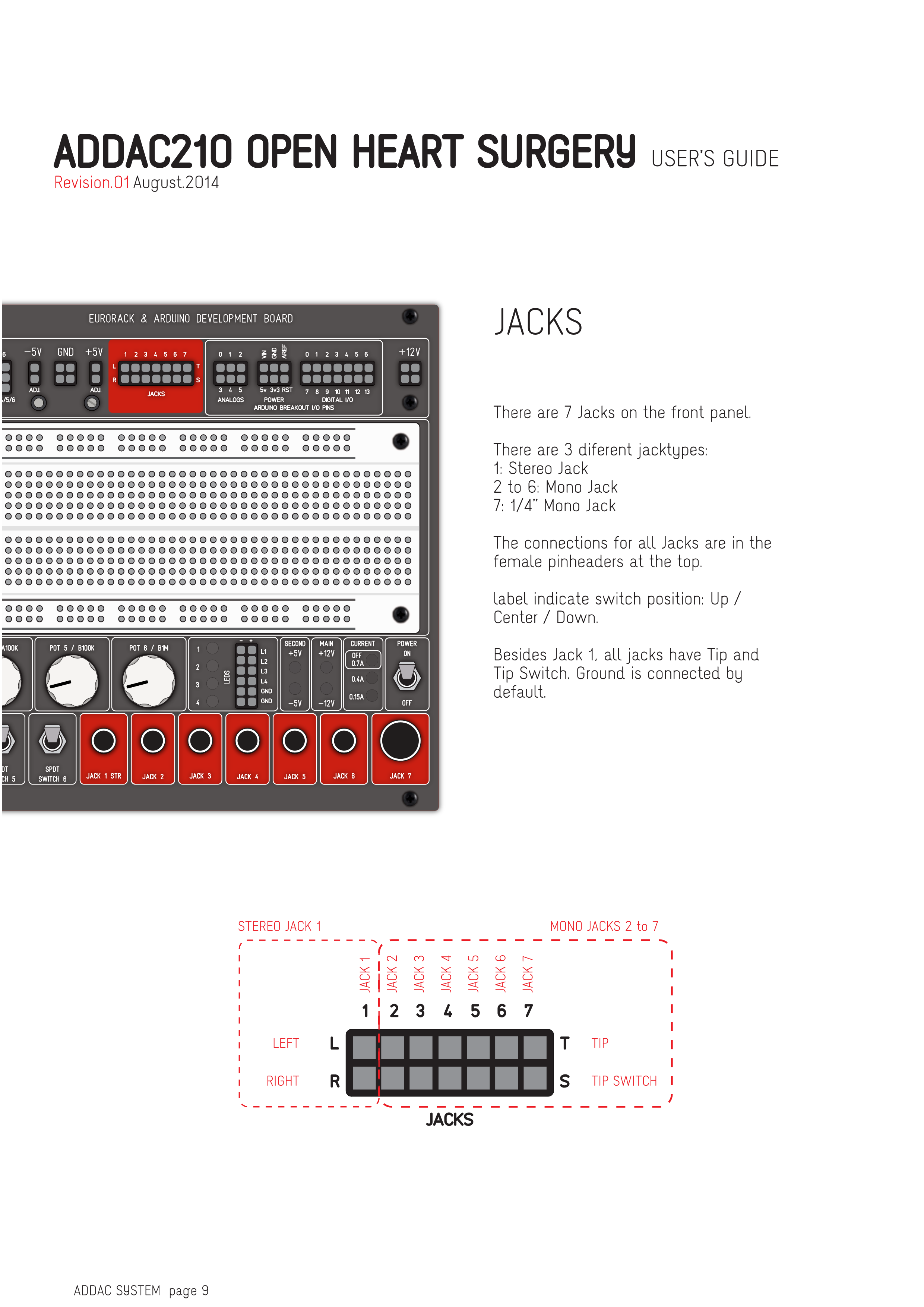 Jack 1以外のすべてのJackには、TipとTip Switchがあります。Groundはデフォルトで接続されています。