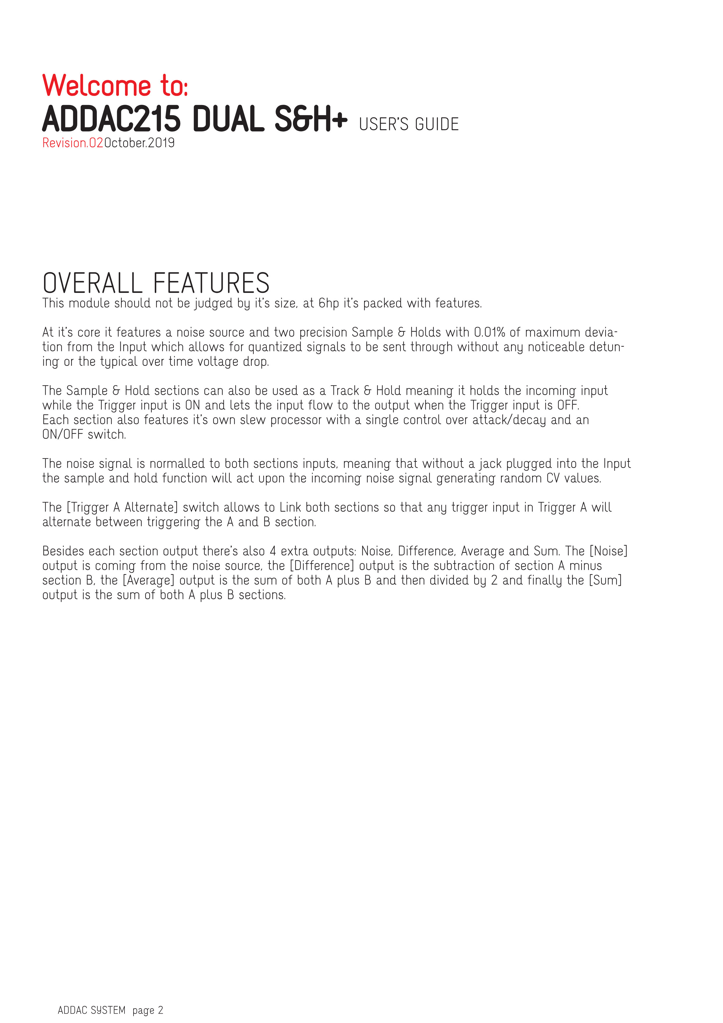 ADDAC215 DUAL S&H+ ユーザーズガイド