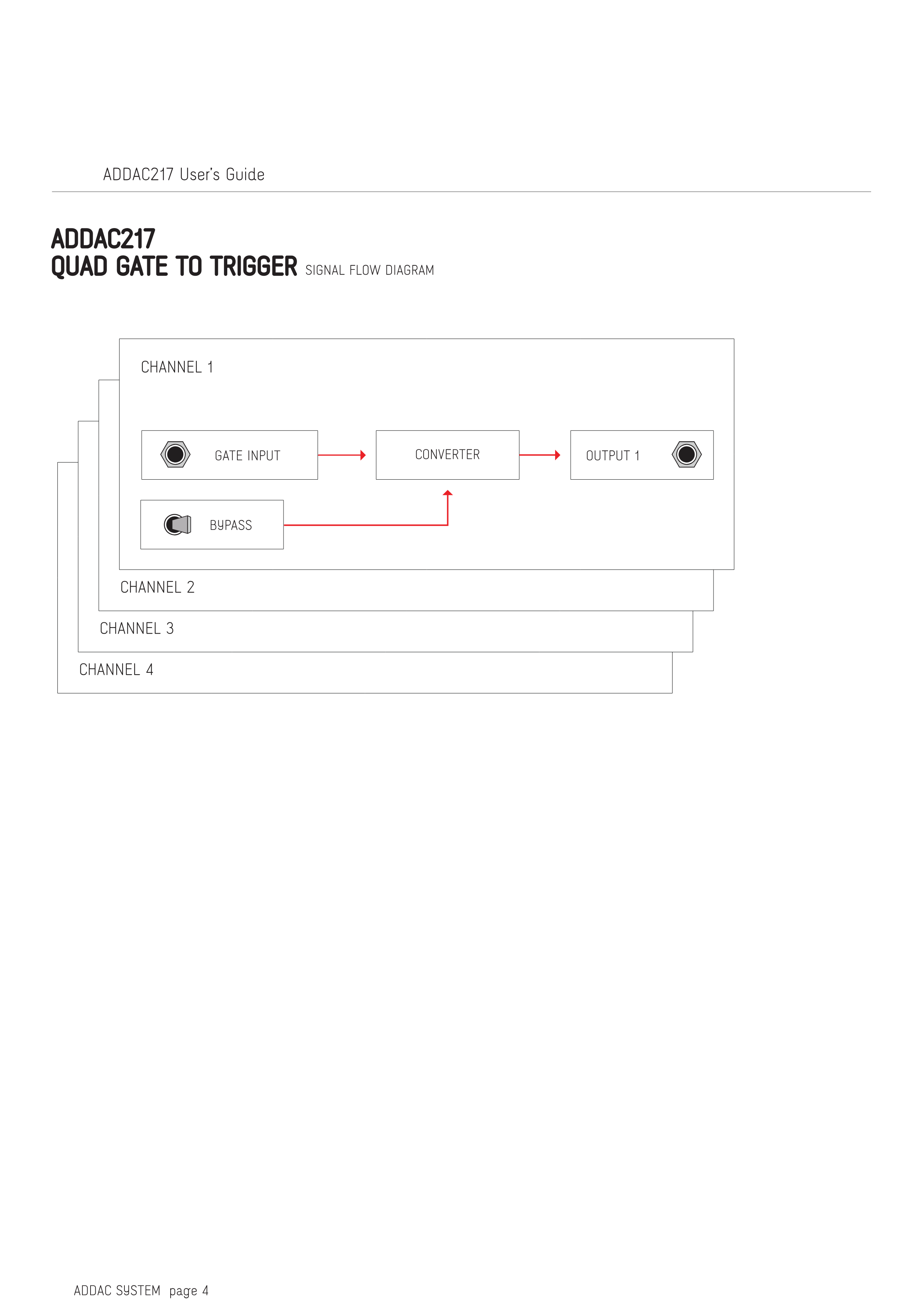 ADDAC217 QUAD GATE TO TRIGGER 信号フロー図