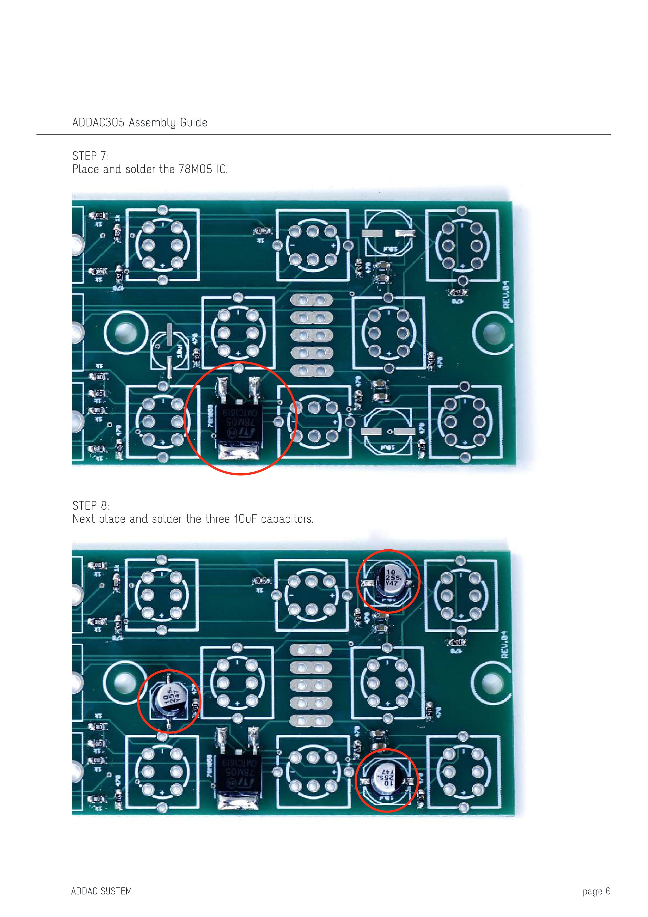 78M05 ICを配置し、ハンダ付けします。