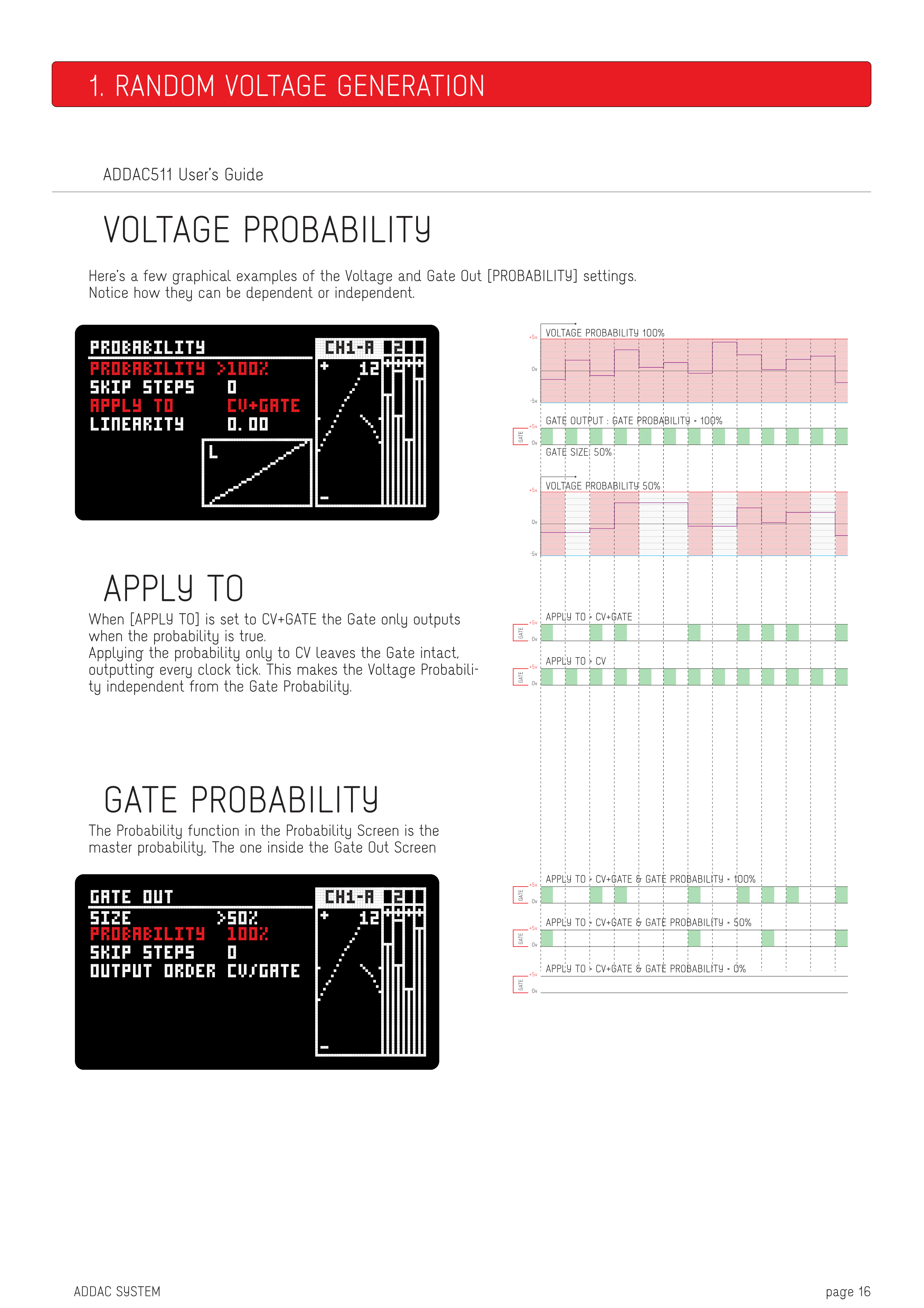 以下は、VoltageとGate Out [PROBABILITY]設定のいくつかのグラフィカルな例です。