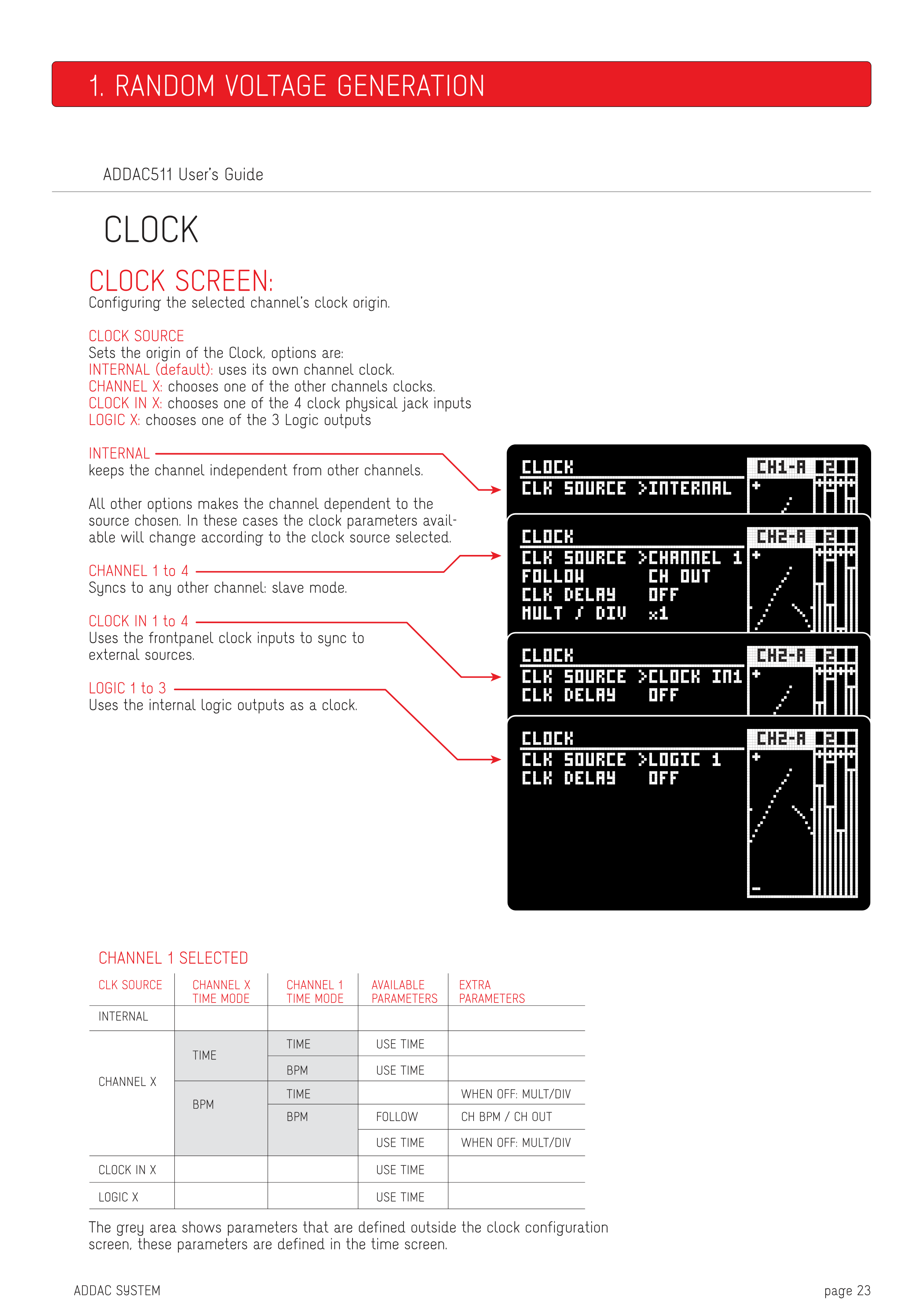 CHANNEL X: 他のチャンネルのいずれかのClockを選択します。