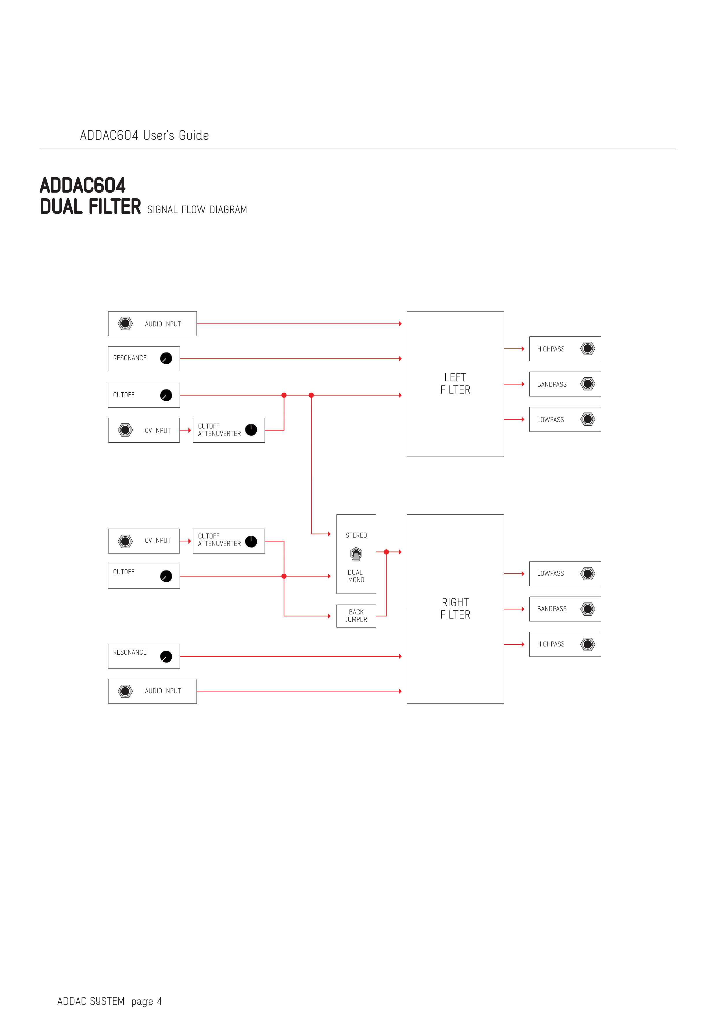 ADDAC604 DUAL FILTER 信号フロー図