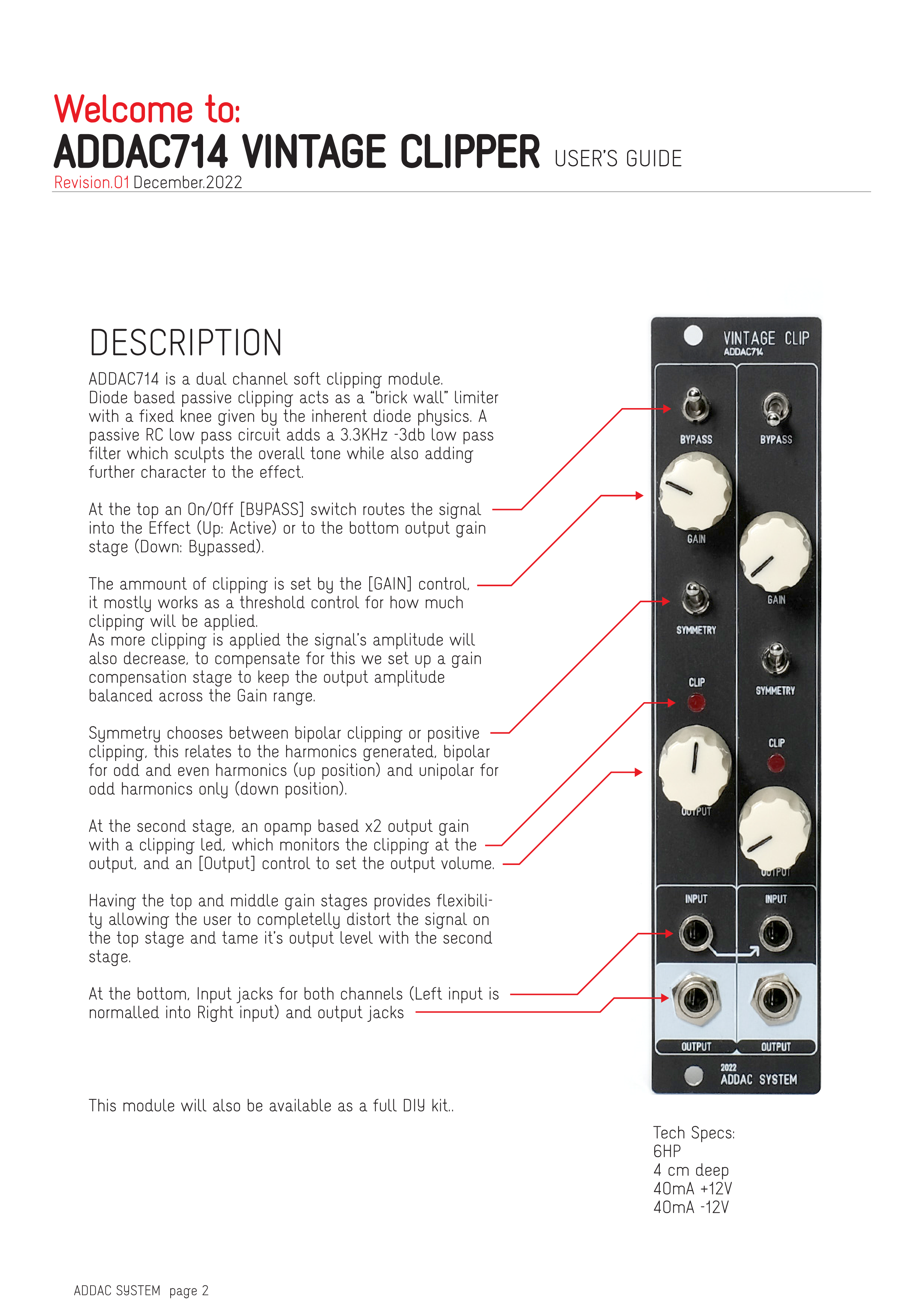 ADDAC714 VINTAGE CLIPPER ユーザーズガイド