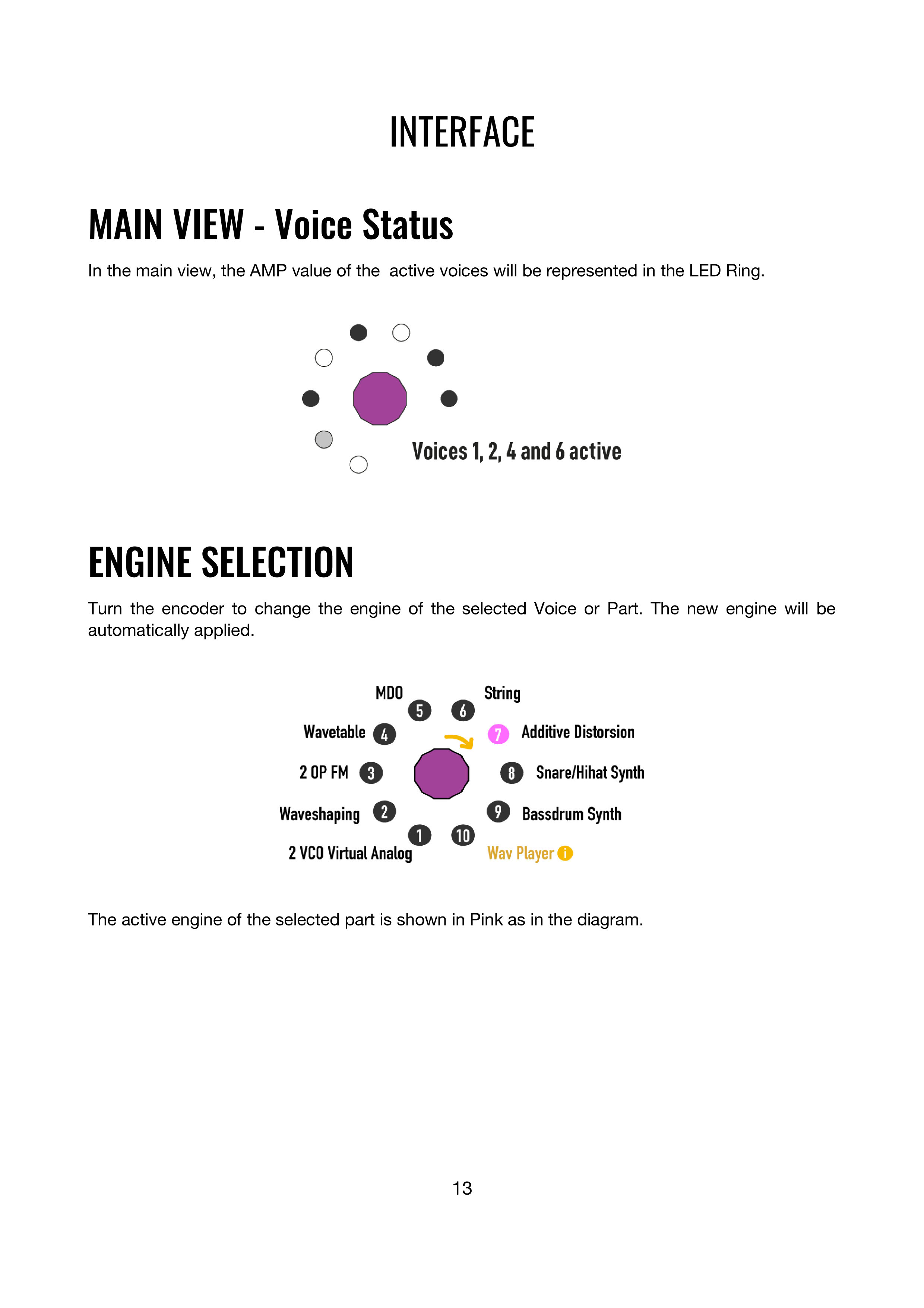 メインビューでは、アクティブなボイスのAMP値がLED Ringに表示されます。