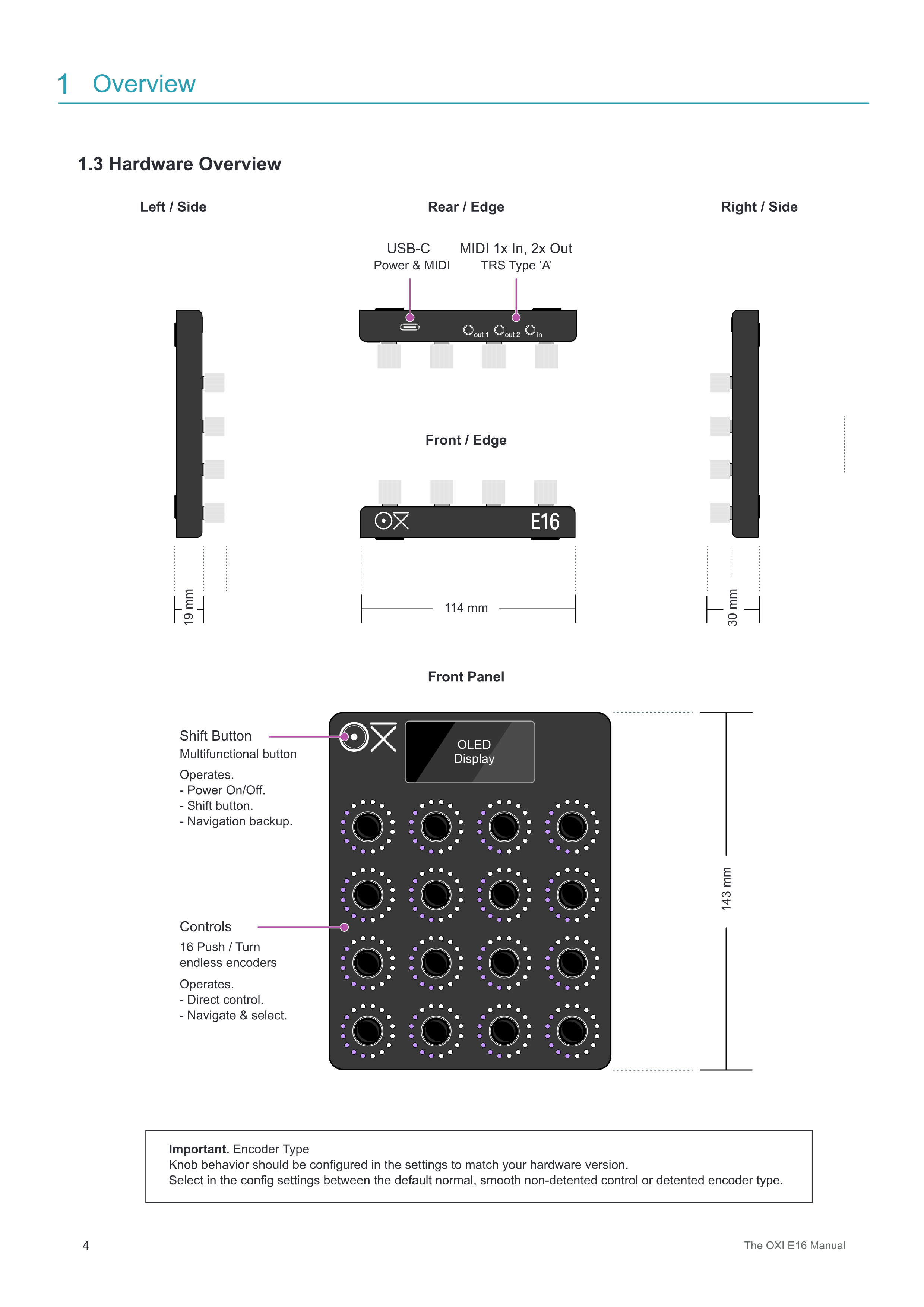 16個のPush / Turn エンドレスencoders