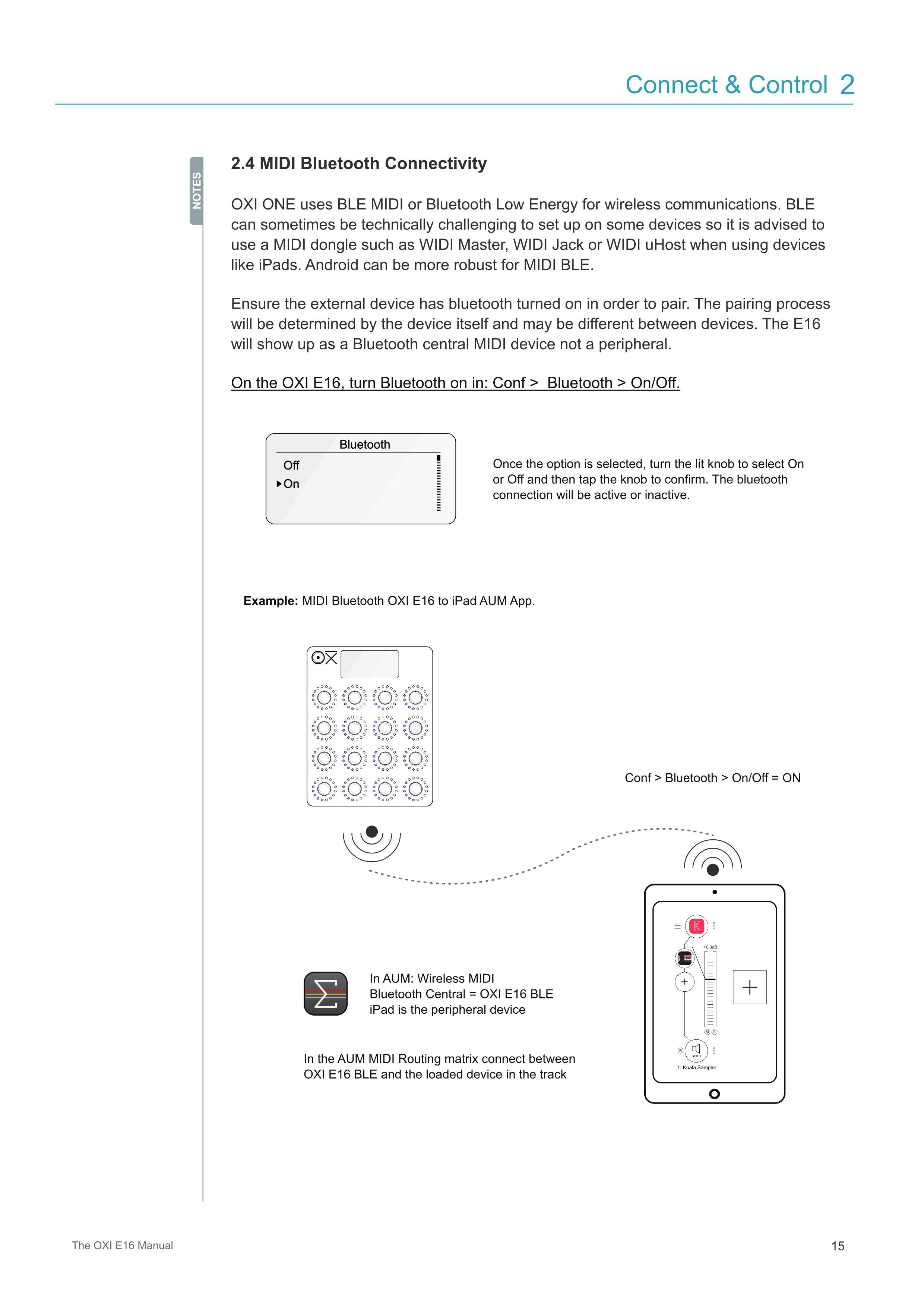 例: MIDI Bluetooth OXI E16からiPad AUMアプリへ