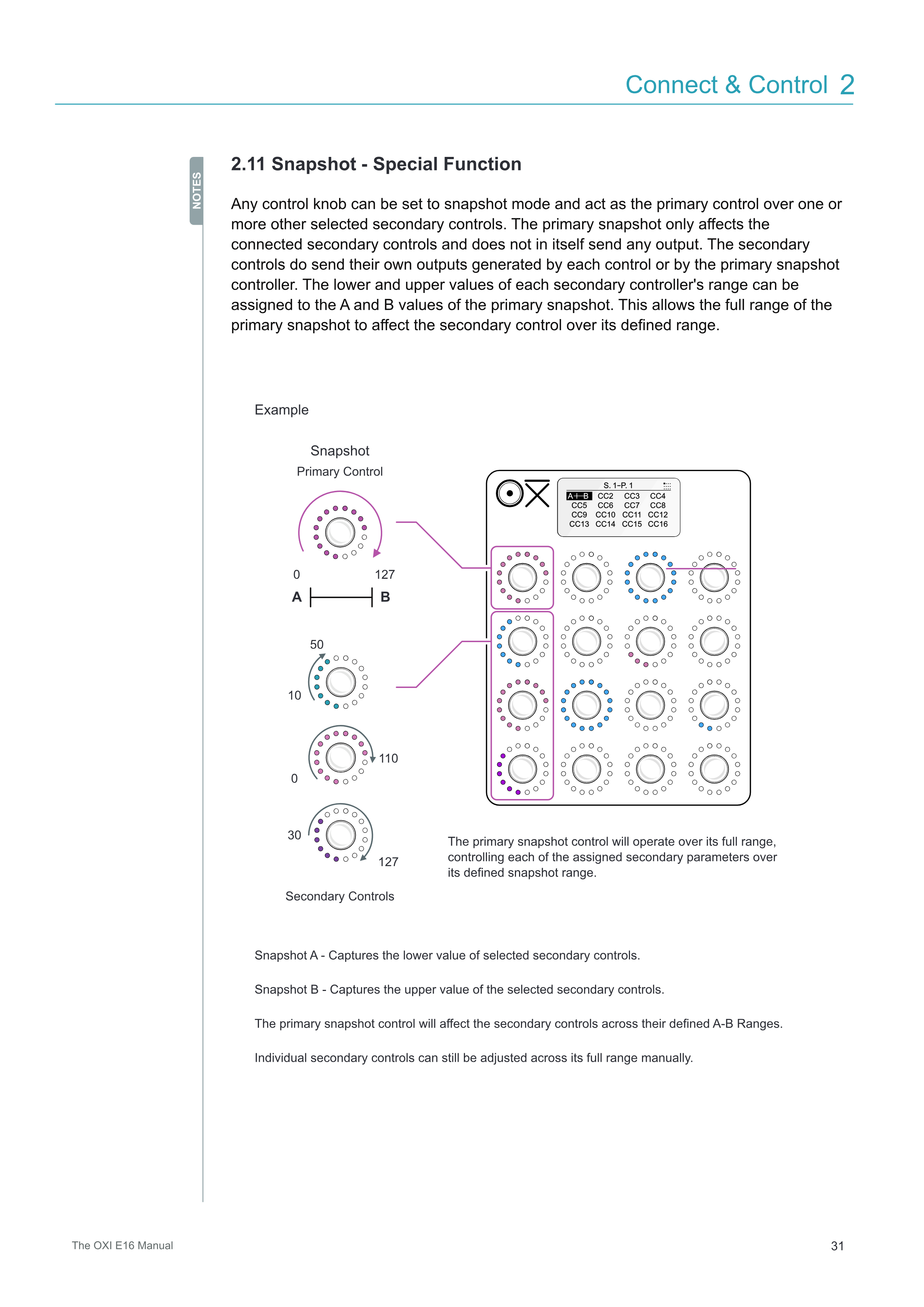 プライマリスナップショットコントロールはそのフルレンジで動作し、割り当てられた各セカンダリパラメーターを定義されたスナップショットレンジで制御します。