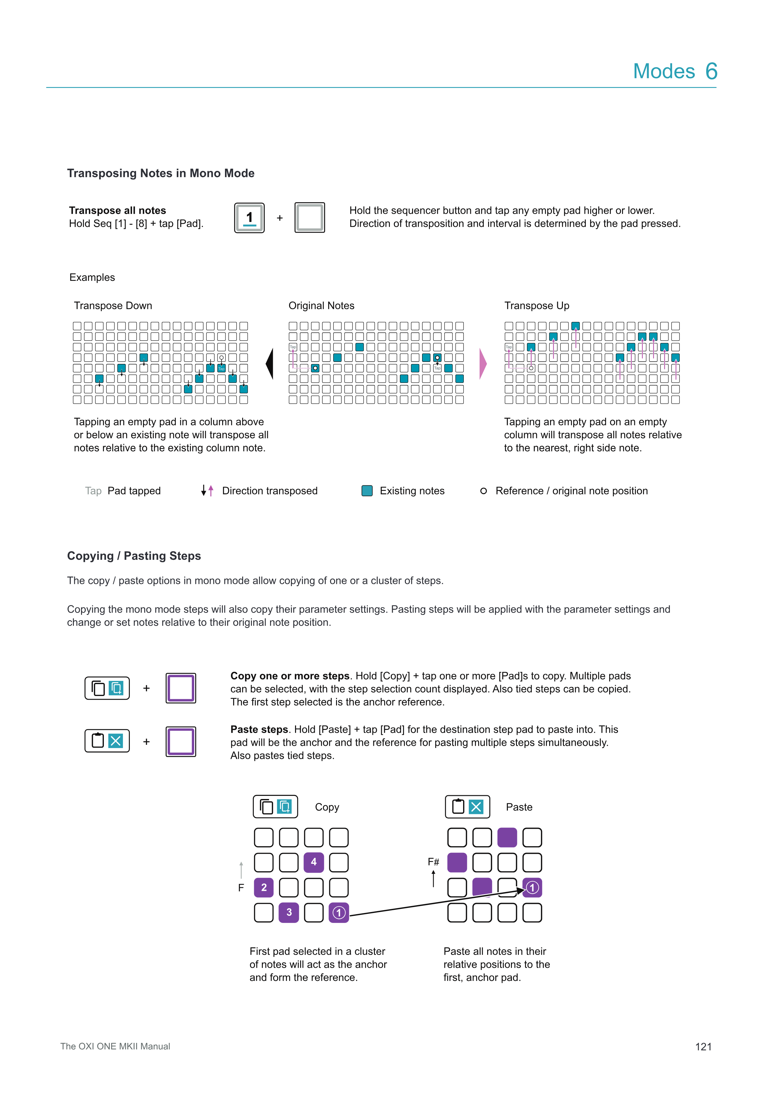 1つ以上のステップをコピー。[Copy]を押しながら1つ以上の[Pad]をタップしてコピーします。複数のパッドを選択でき、選択されたステップ数が表示されます。タイされたステップもコピーできます。最初に選択されたステップがアンカーリファレンスになります。