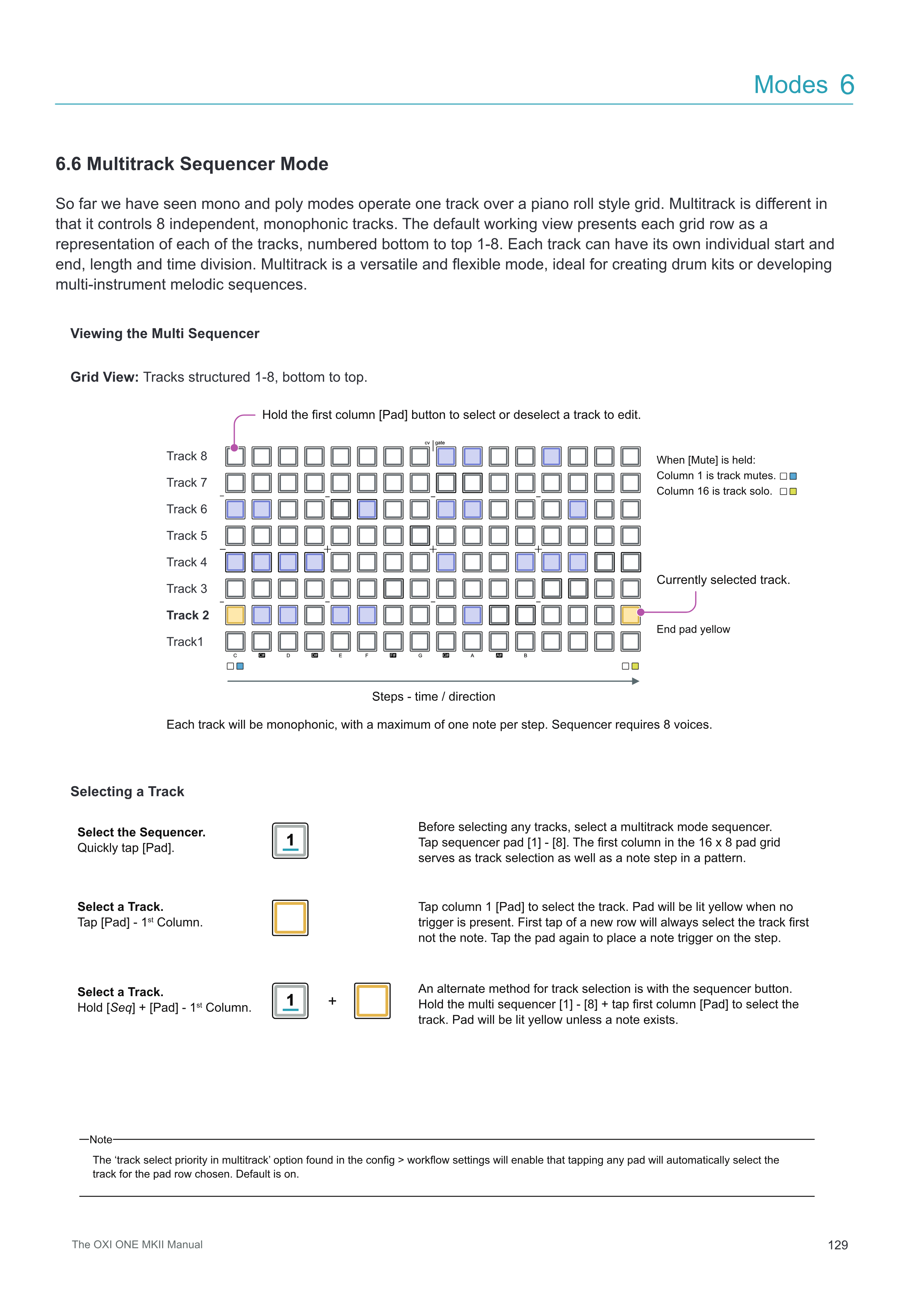 注記 config > workflow settingsにある「track select priority in multitrack」オプションを有効にすると、任意のパッドをタップすることで、選択したパッドの行のトラックが自動的に選択されます。デフォルトはオンです。