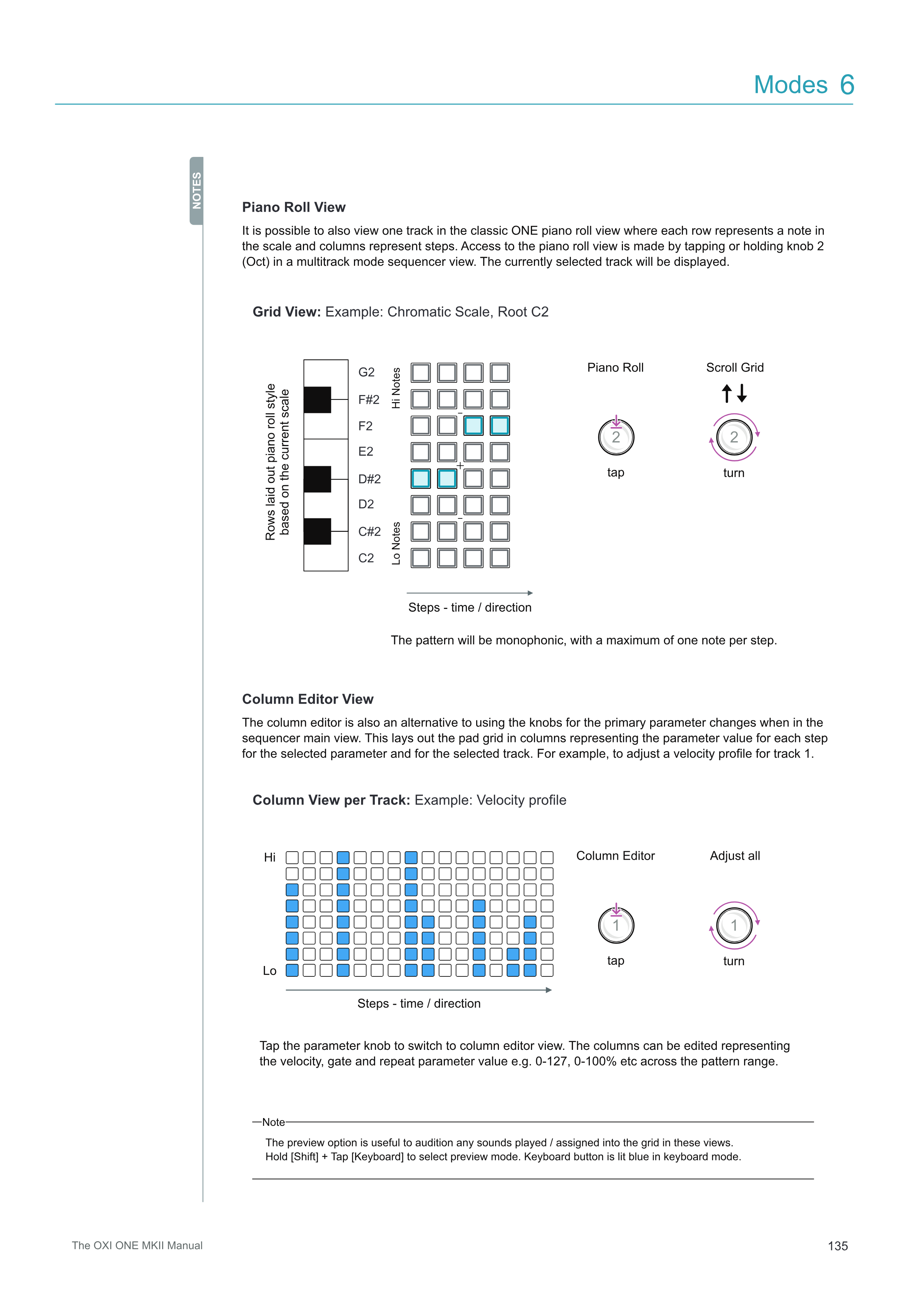 Scroll Grid Adjust all Piano Roll Column Editor Hi Lo turn turn tap tap