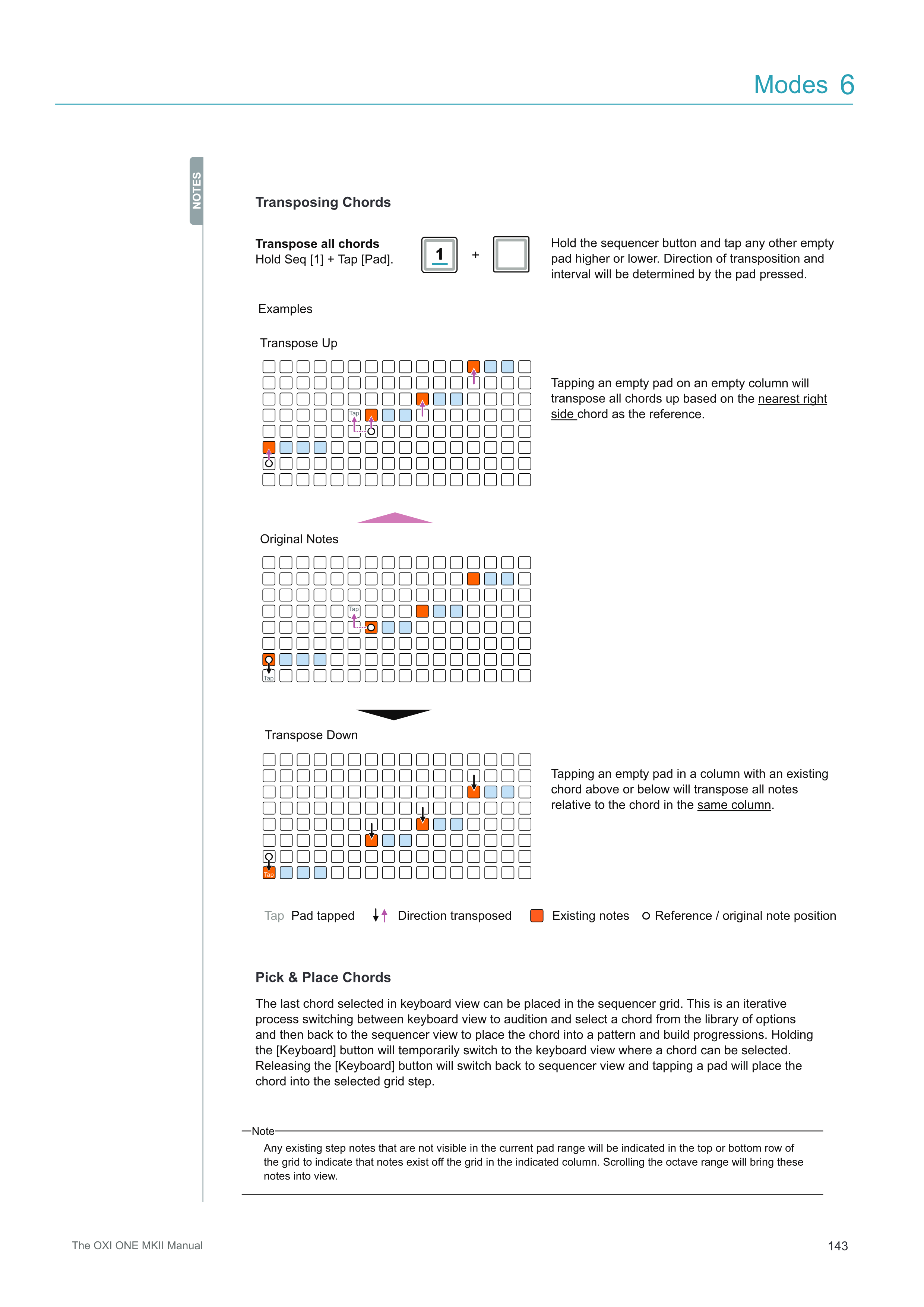 既存のコードの上または下にある列の空のパッドをタップすると、同じ列のコードを基準にしてすべてのノートがトランスポーズされます。