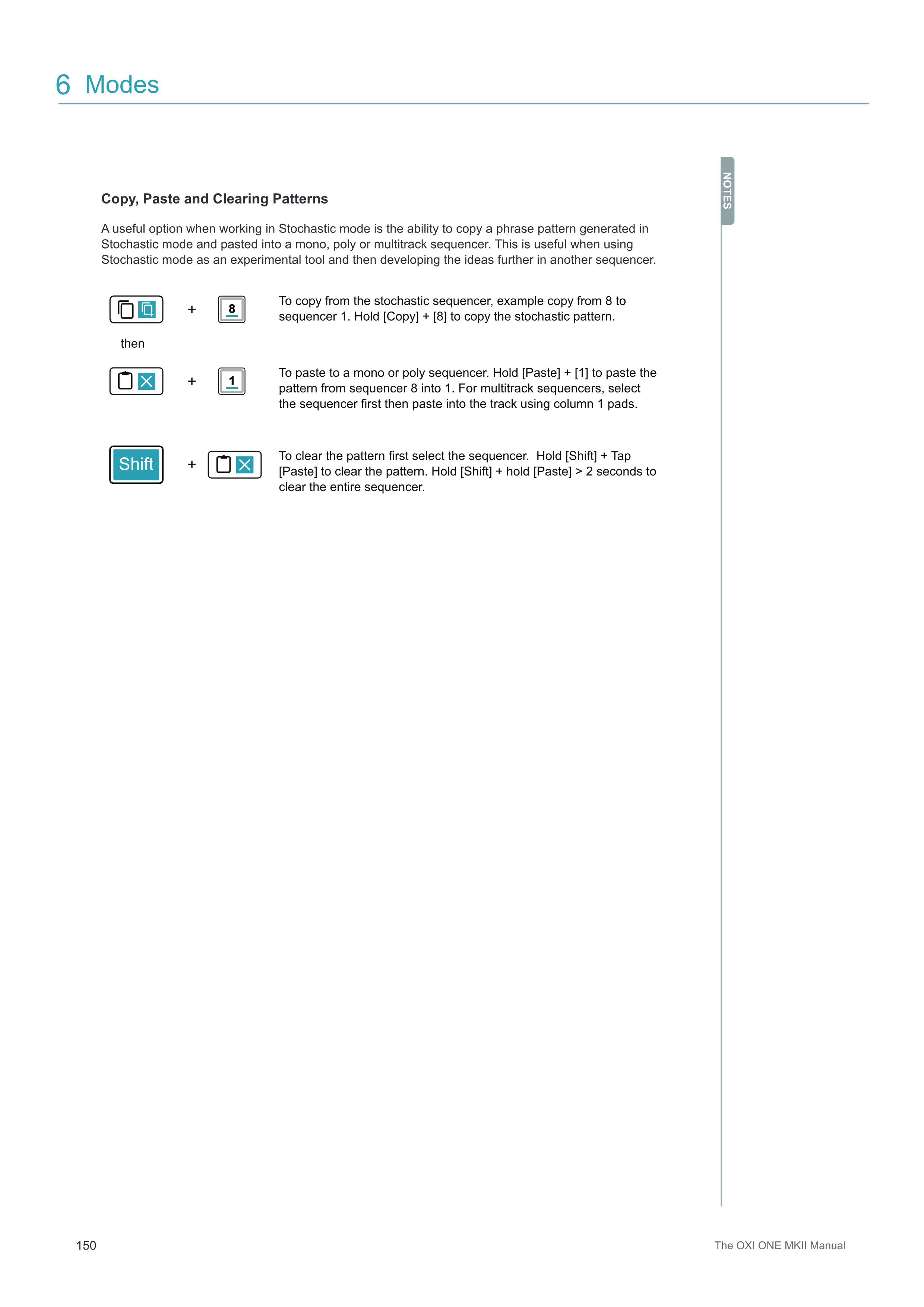 monoまたはpolyシーケンサーにペーストするには、[Paste] + [1]を押したままにして、シーケンサー8から1へパターンをペーストします。multitrackシーケンサーの場合は、まずシーケンサーを選択してから、column 1パッドを使用してトラックにペーストします。