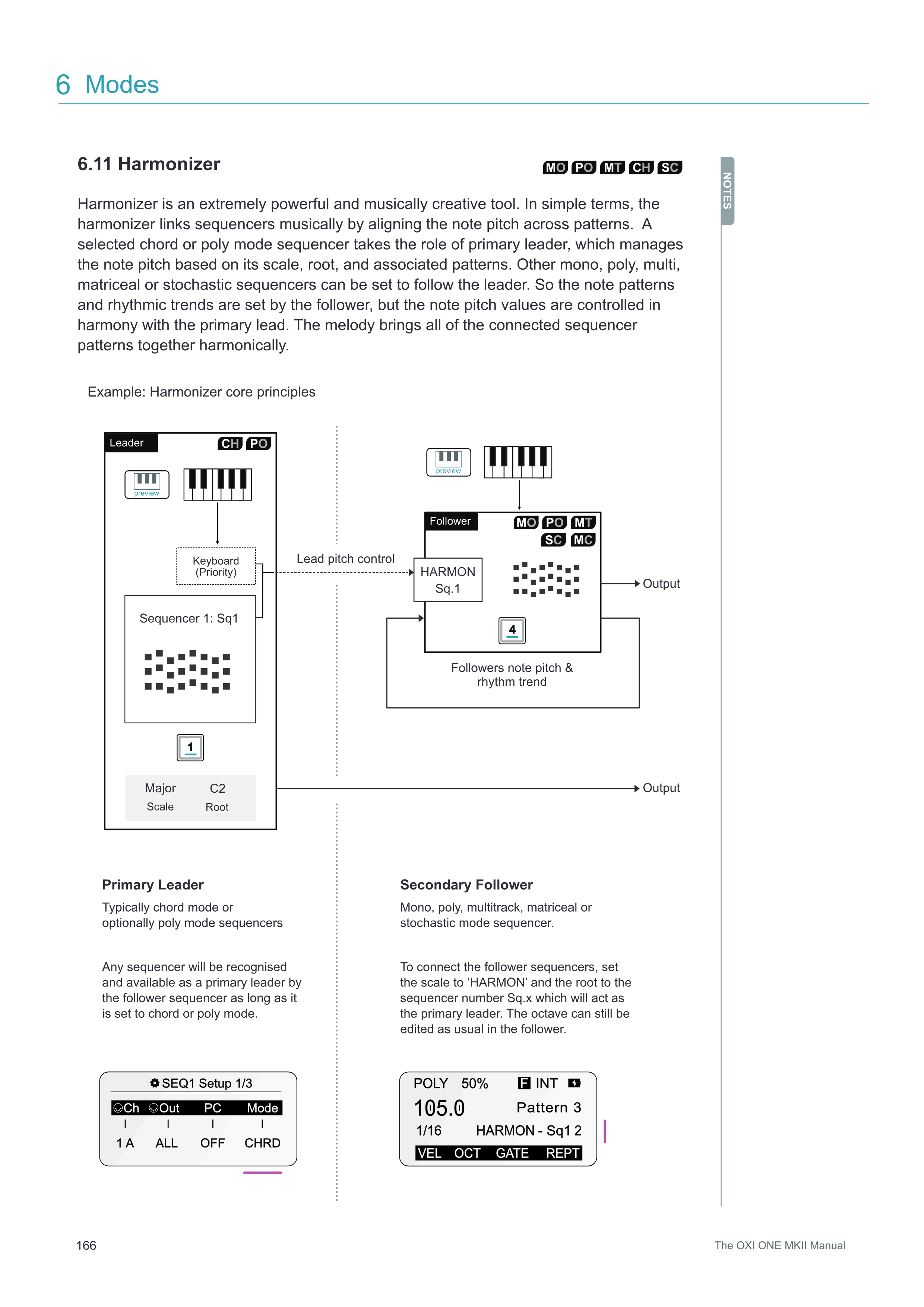 フォロワーのsequencerを接続するには、スケールを「HARMON」に設定し、ルートをプライマリリーダーとして機能するsequencer番号Sq.xに設定します。フォロワーのオクターブは通常通り編集できます。