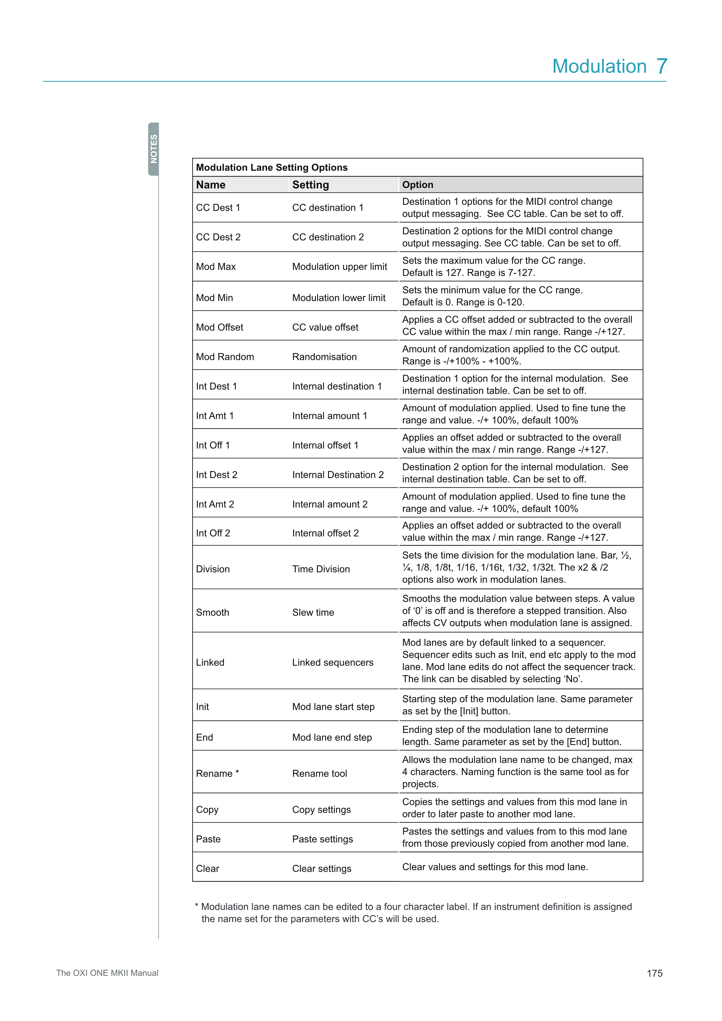 Rename * 名前変更ツール modulationレーン名を変更できます。最大4文字。命名機能はプロジェクトと同じツールです。