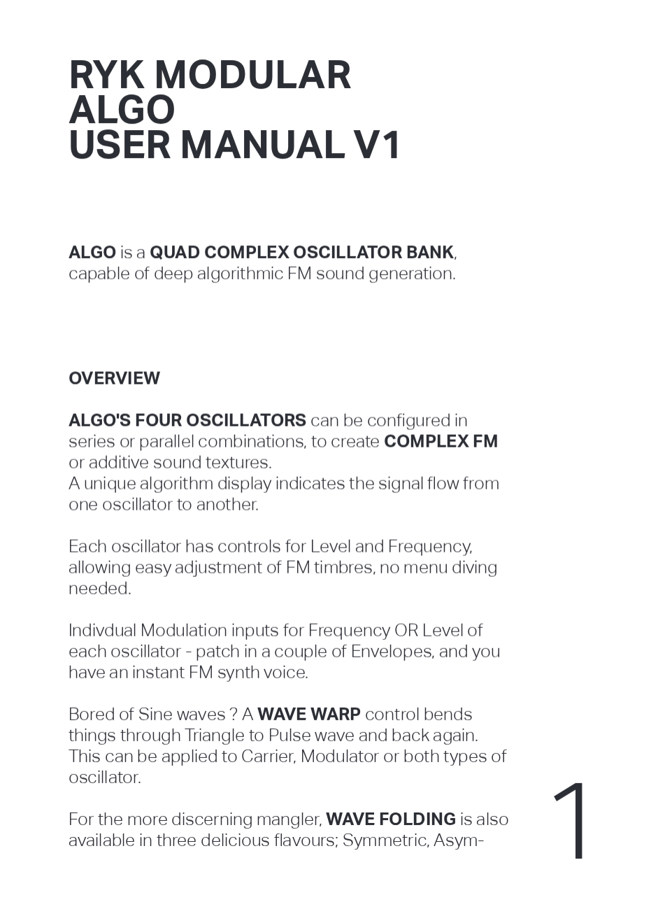 ALGOは、深いアルゴリズムFMサウンド生成が可能なQUAD COMPLEX OSCILLATOR BANKです。