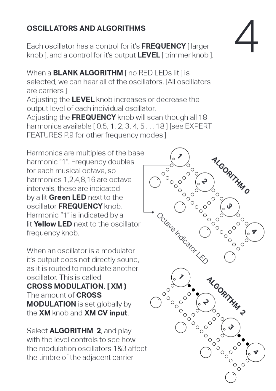 BLANK ALGORITHM[赤いLEDが点灯していない状態]を選択すると、すべてのオシレーターの音を聴くことができます。[すべてのオシレーターがキャリアになります]