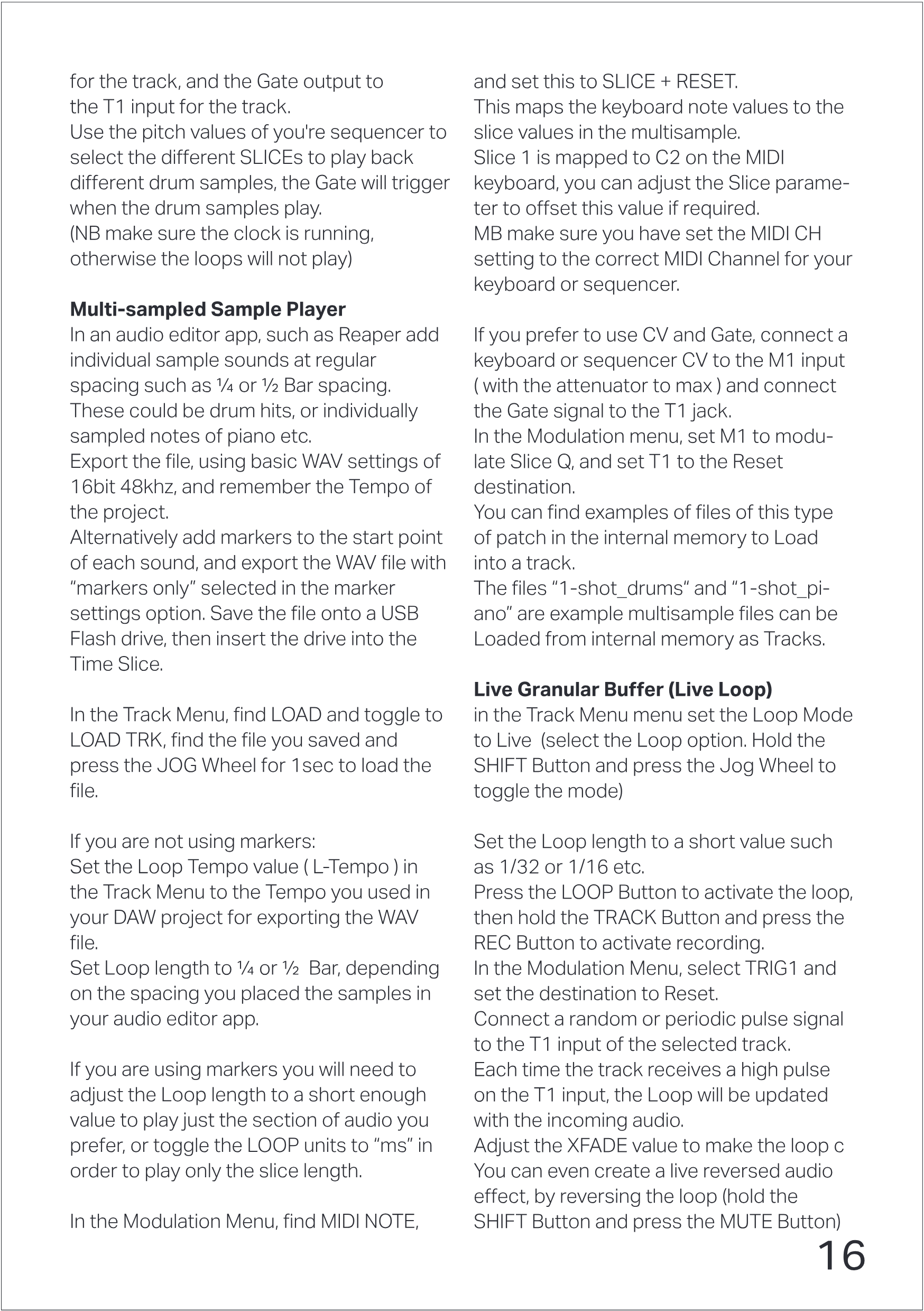 TrackがT1入力でHighパルスを受信するたびに、Loopが受信オーディオで更新されます。