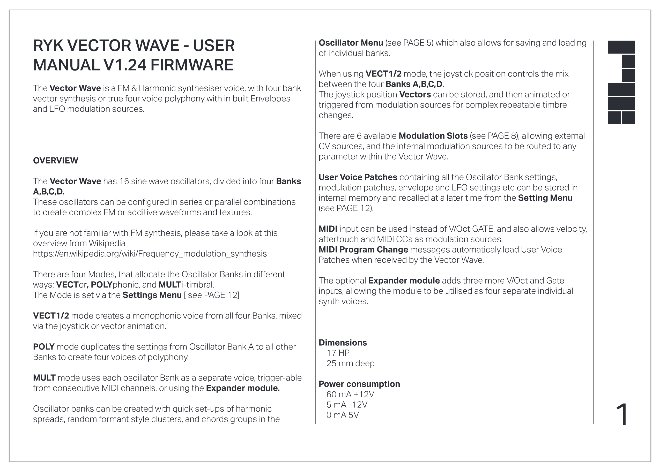 RYK VECTOR WAVE - USER MANUAL V1.24 FIRMWARE