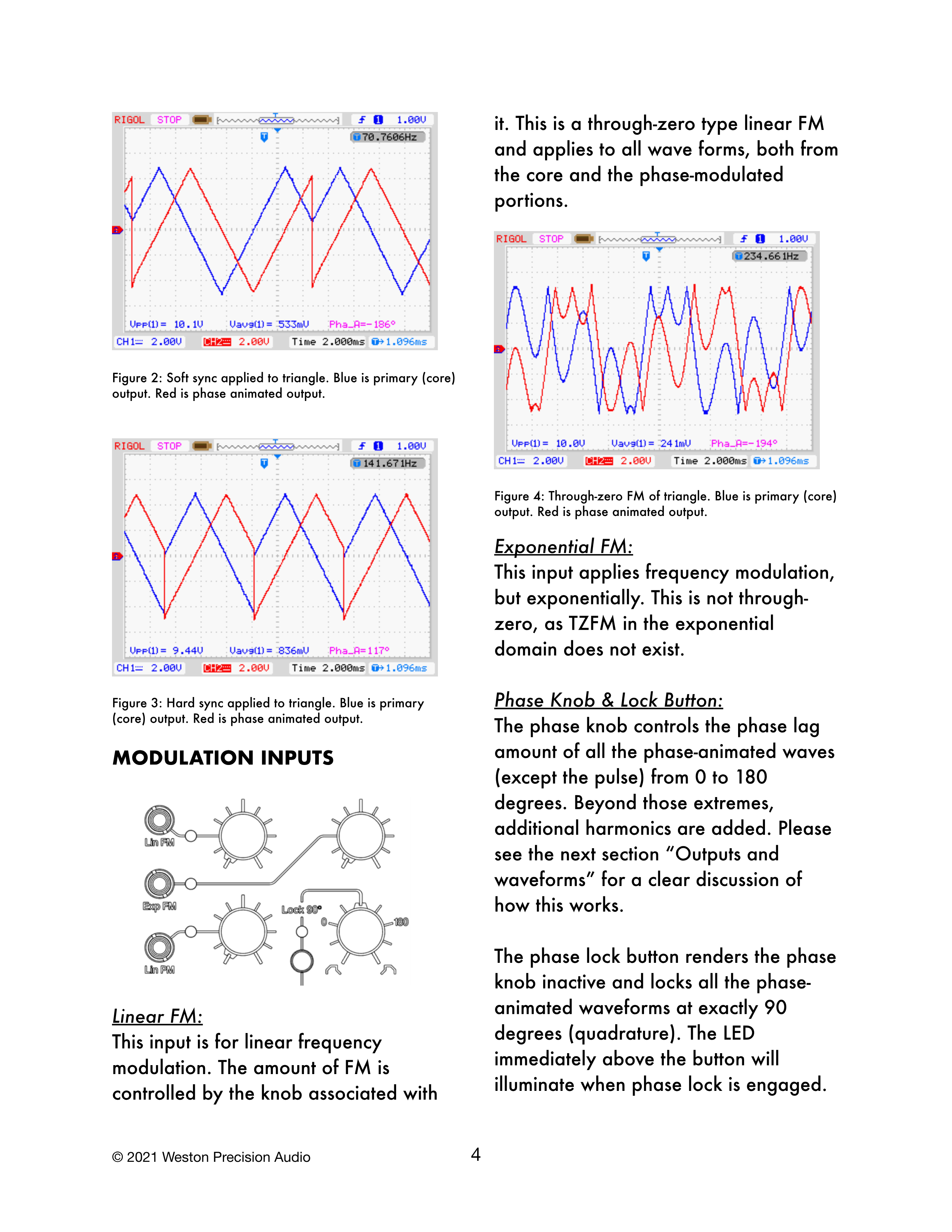 Phase Lockボタンは、Phase Knobを無効にし、すべてのフェーズアニメーテッド波形を正確に90度(直交)でロックします。Phase Lockが有効になると、ボタンの真上のLEDが点灯します。